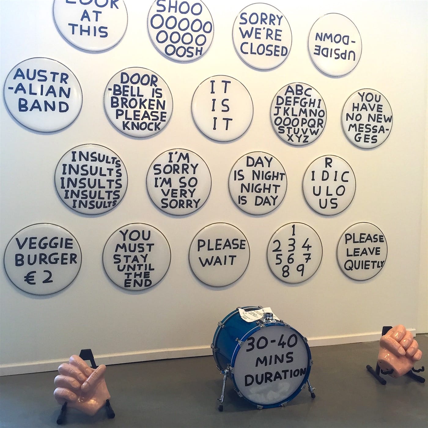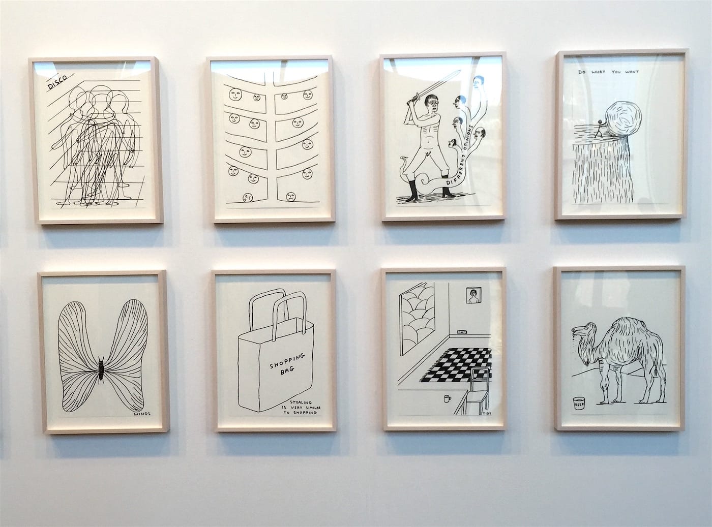 For some chuckles, visit David Shrigley‘s display in the Anton Kern Gallery booth, where I overheard visitors murmur to themselves, “This is my life.” Shrigley’s illustrations capture our inner frustrations and desires (“stealing is very similar to shopping,” reads one), while his instruments, including single-string “problem guitars,” are available for playing.