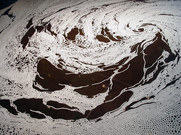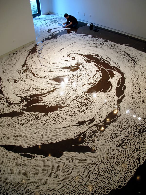 Salt is the subject of a new show my Motoi Yamamoto which has been traveling around the country. Landing recently in Los Angeles, at Loyola Marymount University’s Laband Art Gallery, Yamamoto’s labyrinthine installation, “Return to the Sea,” occupies the entire space. As he hunches over, carefully laying out each grain, his work is reminiscent of the mandala practice of Tibetan monks. But instead of colored sand, the use of salt as a medium speaks to this most basic of minerals.