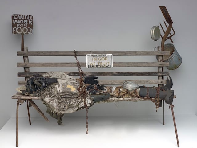 Dial, a former railway-car factory welder living in Bessemer, Alabama, is a master craftsman whose complex, freestanding or wall-mounted constructions are expertly assembled and astutely composed. There is nothing Dial has not used to make art; with such titles as “History Refused to Die,” “Tuscaloosa” and “Don’t Matter How Raggly the Flag, It Still Got to Tie Us Together,” his works have not shied away from life’s biggest subjects — racism, justice, war, death, redemption and hope.