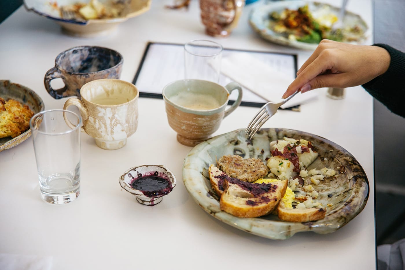 Our conversation took place on the café side of Trinosophes, where the entire food service is served in vessels made by Crissman. This “show,” titled Please, represents Crissman’s own struggle with his identity as a potter, and art as commodity.