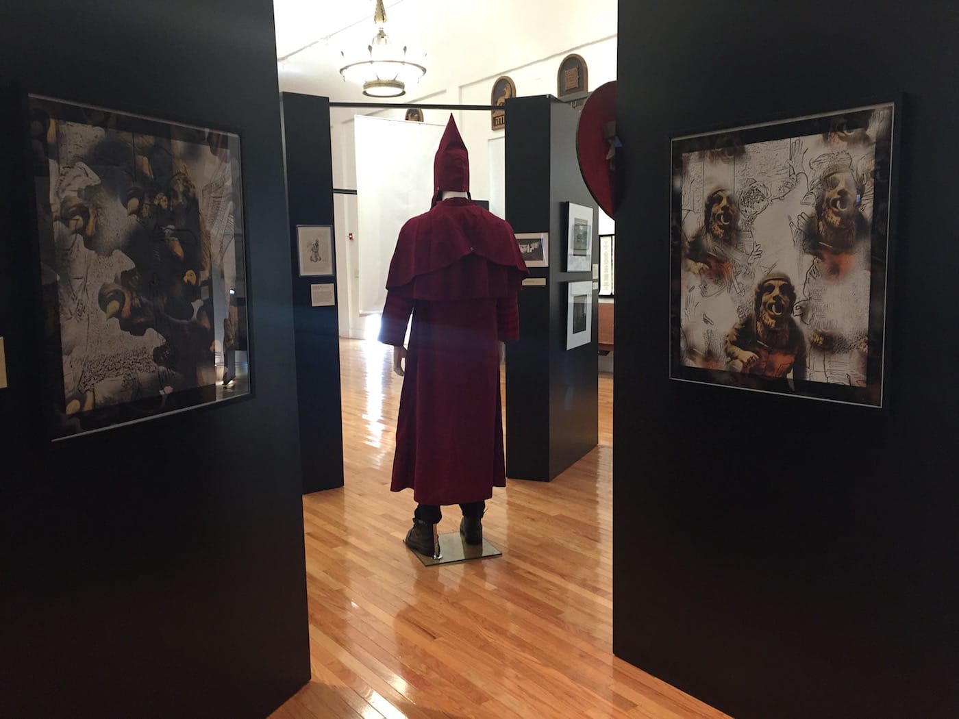 Before traveling here, this exhibition was previously at the Hebrew Union College Jewish Institute of Religion. There, it didn’t include the blood-red KKK King Kleagle robe, a kind of pièce de résistance for the Miami show. King Kleagles oversee a given geographic area of the Klan and are responsible for recruiting new Klansmen, and this particular robe, from the 1940s, comes at an unnerving time, on the heels of the white supremacist demonstrations in Charlottesville.