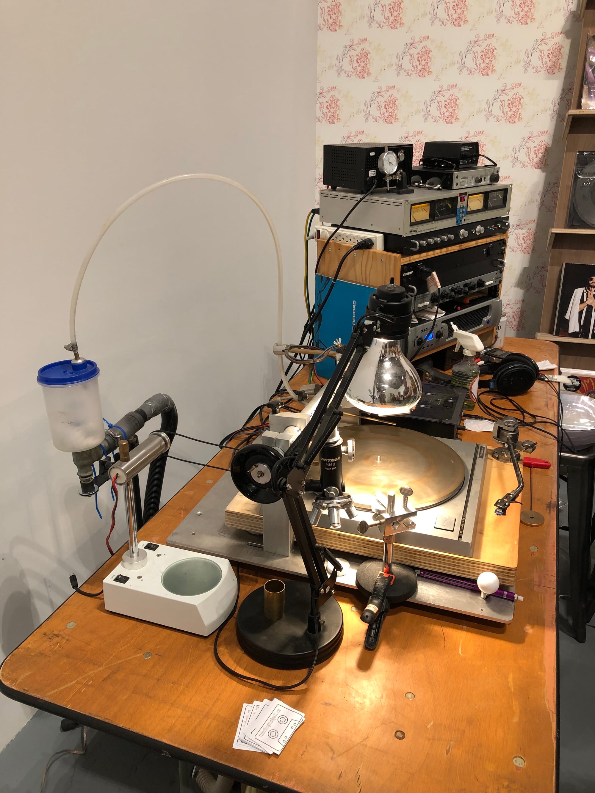 At Gagosian, a desktop record lathe is set up to produce limited run vinyl records for sale. Throughout the weekend, the space will press the latest record from artist Spencer Sweeney’s band I.U.D. in real time.
