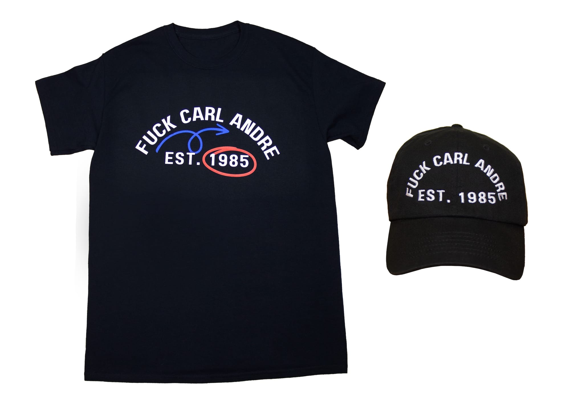 Designed by artist Christine Egaña Navin and sold through pop-up exhibition space Project Art Distribution, the black shirts and caps read "FUCK CARL ANDRE EST. 1985" in reference to the year Andre was accused of murdering his wife of eight months, Ana Mendieta, a Cuban-born American artist renowned for her feminist performance work underlining the relationship between natural landscapes and the politics of the female body.