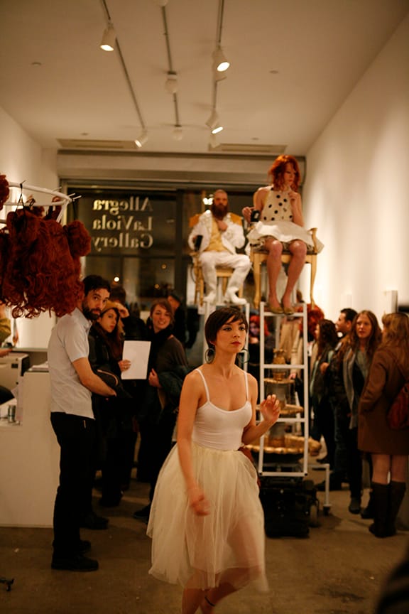 SR: You have an upcoming performance in conjunction with your show Super Supra Diluvian at Allegra LaViola Gallery. I heard there will be a giant bird, a wheel, skimpy outfits and glistening flesh. Should I bring dollar bills?