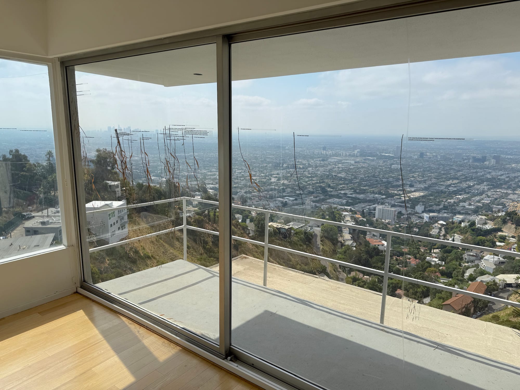 On the bedroom’s windows, Maria Maea has noted the dates, locations, and descriptions of several Immigration and Customs Enforcement (ICE) abductions in her piece “Then They Came” (2025). When ICE began descending on immigrant communities across LA in early June, Scheyer’s house on the hill felt especially disconnected from the reality taking place in the city below.