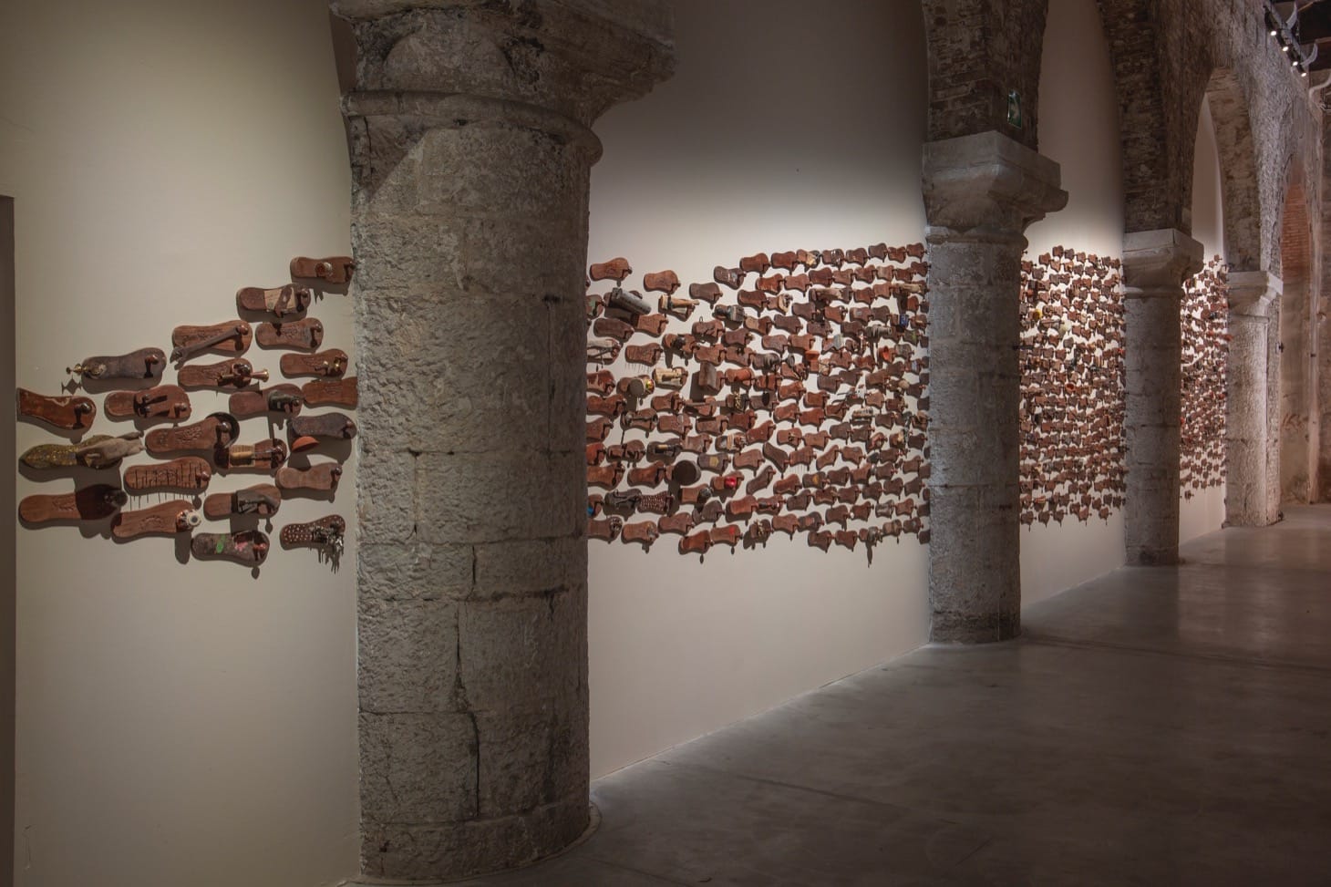 With the quiet reflection required by each of the works on display, Our Time for a Future Caring is a thoughtful dialogue on resistance and nonviolence. In this regard, GR Iranna’s “Naavu (We Together)” (2012) fills up a wall with undulating sets of padukas (slippers made from wood) in order to signify Gandhi’s long walks across the villages of India. They act as testament to his most successful form of collective mass action: the march. This contemporary moment does well to reflect on the spirit of this collective action, and the potential of the nonviolent protest.