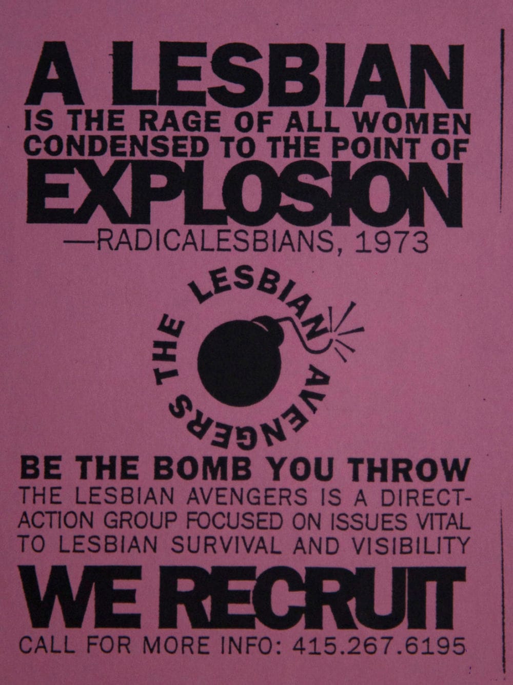 It's one of the countless legacies of the Avengers, which fought fiercely for lesbian visibility and survival, advocating for gay and lesbian individuals to be included in school curricula and opposing homophobic legislation.