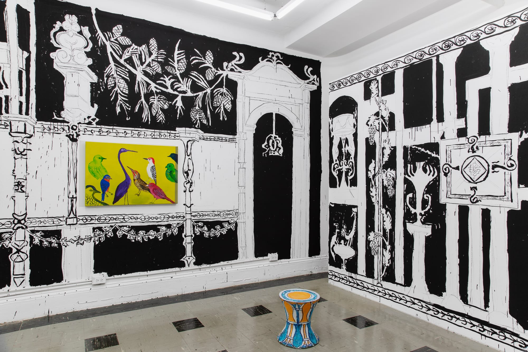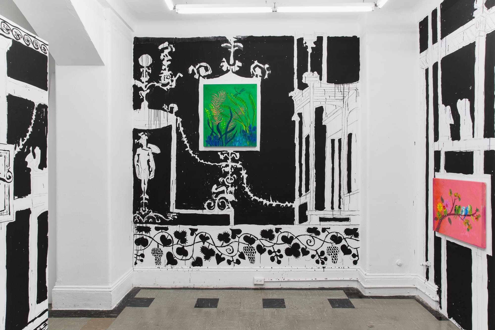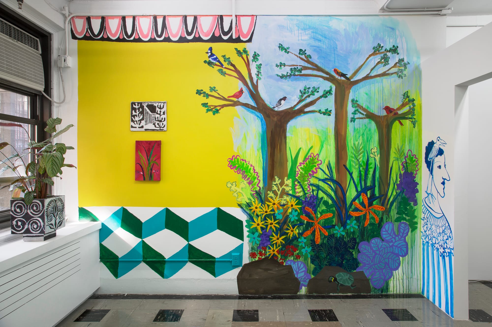 If there’s a conceptual thread that animates Garden it’s a question of framing: What transforms any space into a garden? The show is not a wholly immersive experience; rather, the more decorative elements throw the gallery’s linoleum floors, air conditioner, and exposed lighting into humorous relief. But by framing Kley’s timeless landscapes and Tabboo!’s zany dreamscapes as gardens, they offer an escape from autumn dreariness, a means to suspend disbelief and just sniff the flowers.