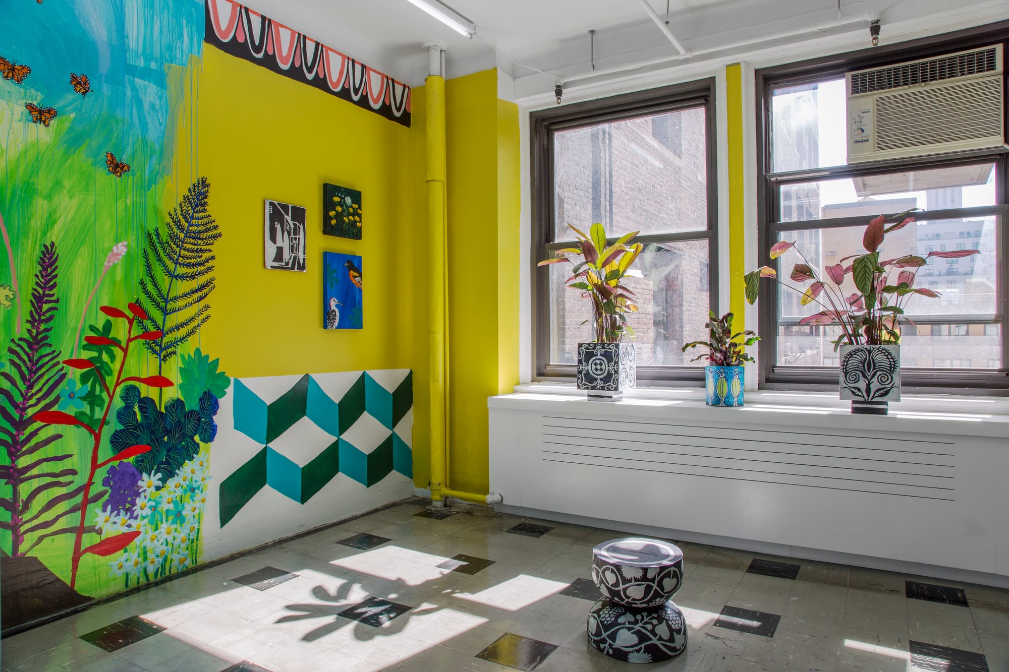Both artists are drawn to what’s most outsized, colorful, and performative about visual culture and what’s most expressive, emotional, and generous about surfaces. Garden isn’t cool and ironic like a Warhol painting or empty and kitsch like a Koons sculpture; it’s exciting, openhearted, and sweetly human. In its homey maximalism, the show fulfills its titular function: giving the viewer space to bask in its dazzling color.