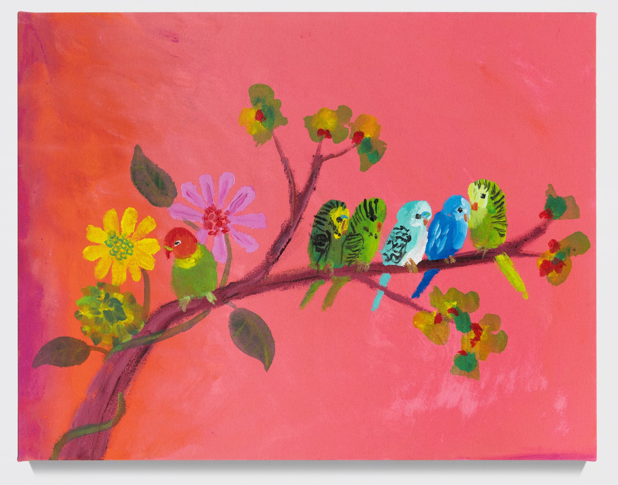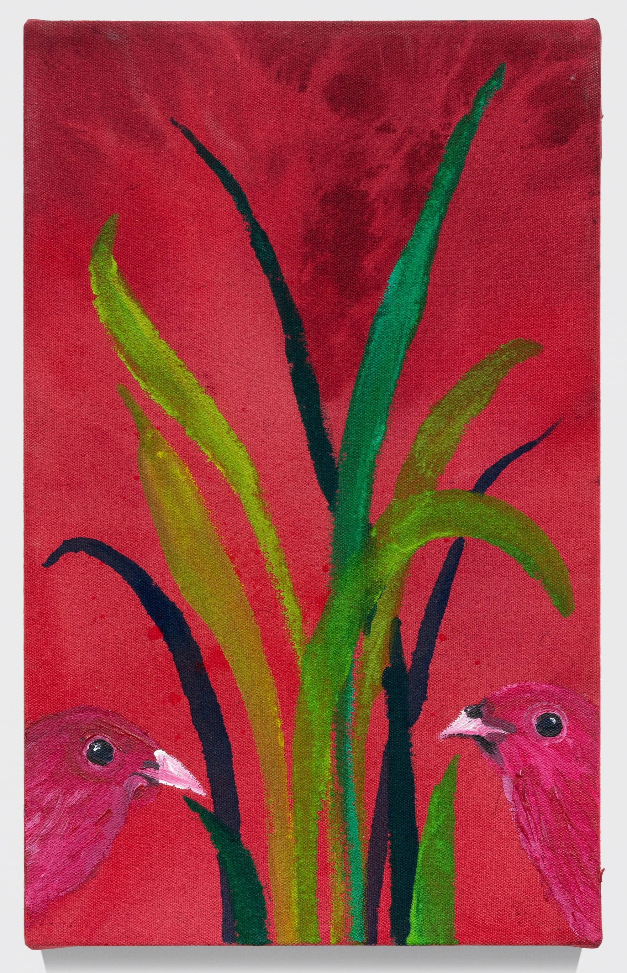 In contrast, his contributions to Garden are airy, self-contained, and palpably joyful. As lovely as his pastoral scenes are, Tabboo!’s best works are those that collapse the categories of his imagination and leave you to sift through the resulting weirdness and beauty. A wall of kooky, Ensor-esque figures based on friends and puppets definitely fits this, as do his paintings of exotic and common birds in “Parakeets On Pink” and “Purple Heron.” But the best is a series of free-association paintings inspired by delectable and totemic words like “Flummery,” “Amoreena,” and “Disable Comments,” which find him meeting masters of stylized nature, like Vera Neumann and Charley Harper, firmly at their level.