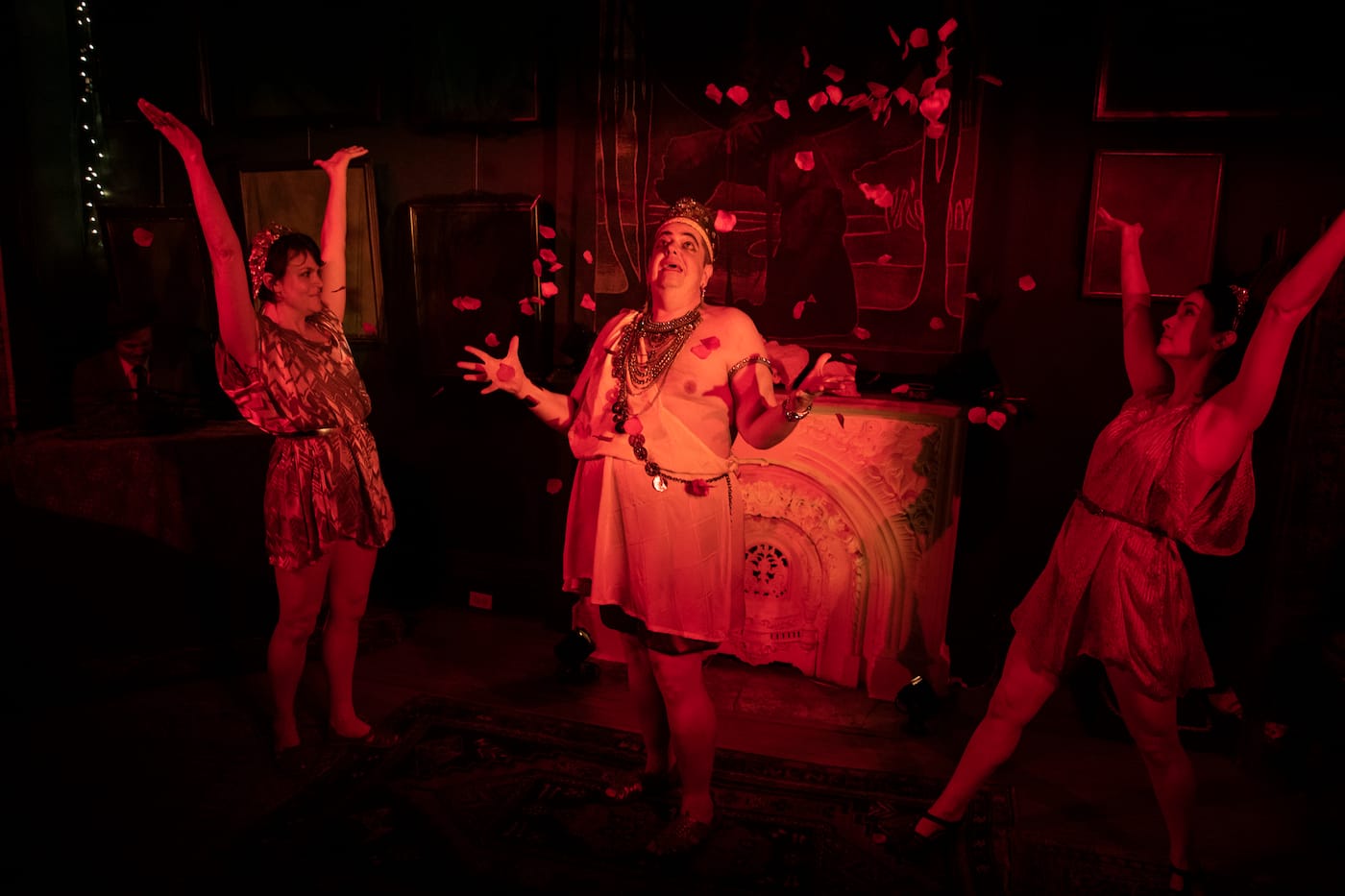 Paul Swan Is Dead and Gone, directed by Steve Cosson and now showing in the converted Chelsea townhouse theater Torn Page, recreates the atmosphere of Swan’s weekly gatherings, in a boudoir-like space with emerald green walls hung with reproductions of his artworks. The author of this play is Claire Kiechel, Swan’s great-grand niece. Though her family talked about Paul as a cautionary tale against being an artist, Kiechel saw it differently. “I held onto Paul as a talisman, a guiding queer light in dark and serious times,” she writes in her playwright’s note. “My relationship with Paul has shifted throughout the years — I’ve been repulsed by him, amazed by him, amused and embarrassed by his stark, sincere longing.”