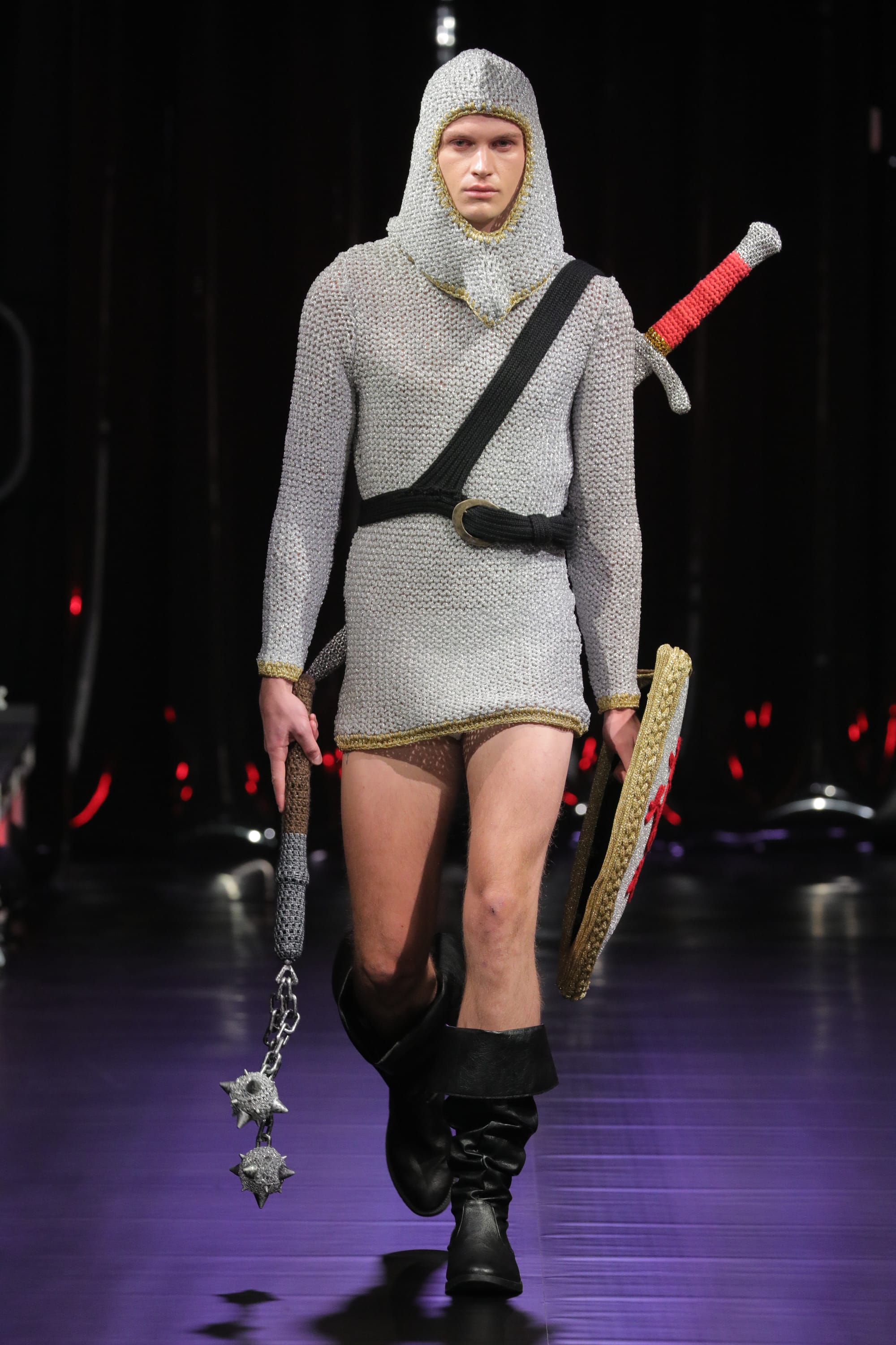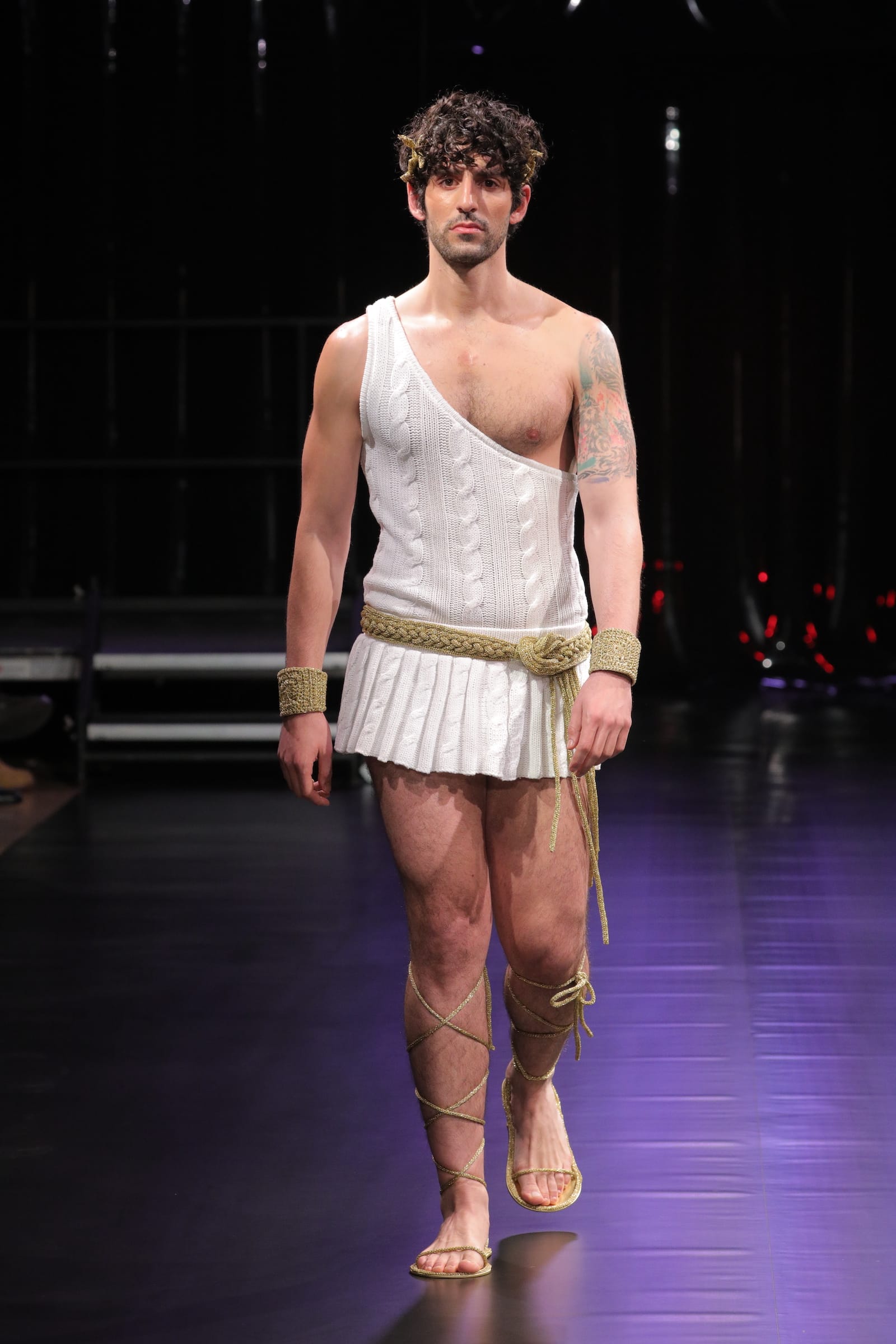 The unbahhhhlievable pieces, inspired by "fantasy and fetish" — including knit leather daddy, slutty Adam from Genesis, Knight, and a woven Greco-Roman figure — will be auctioned to benefit LGBTQ+ causes at a later date.