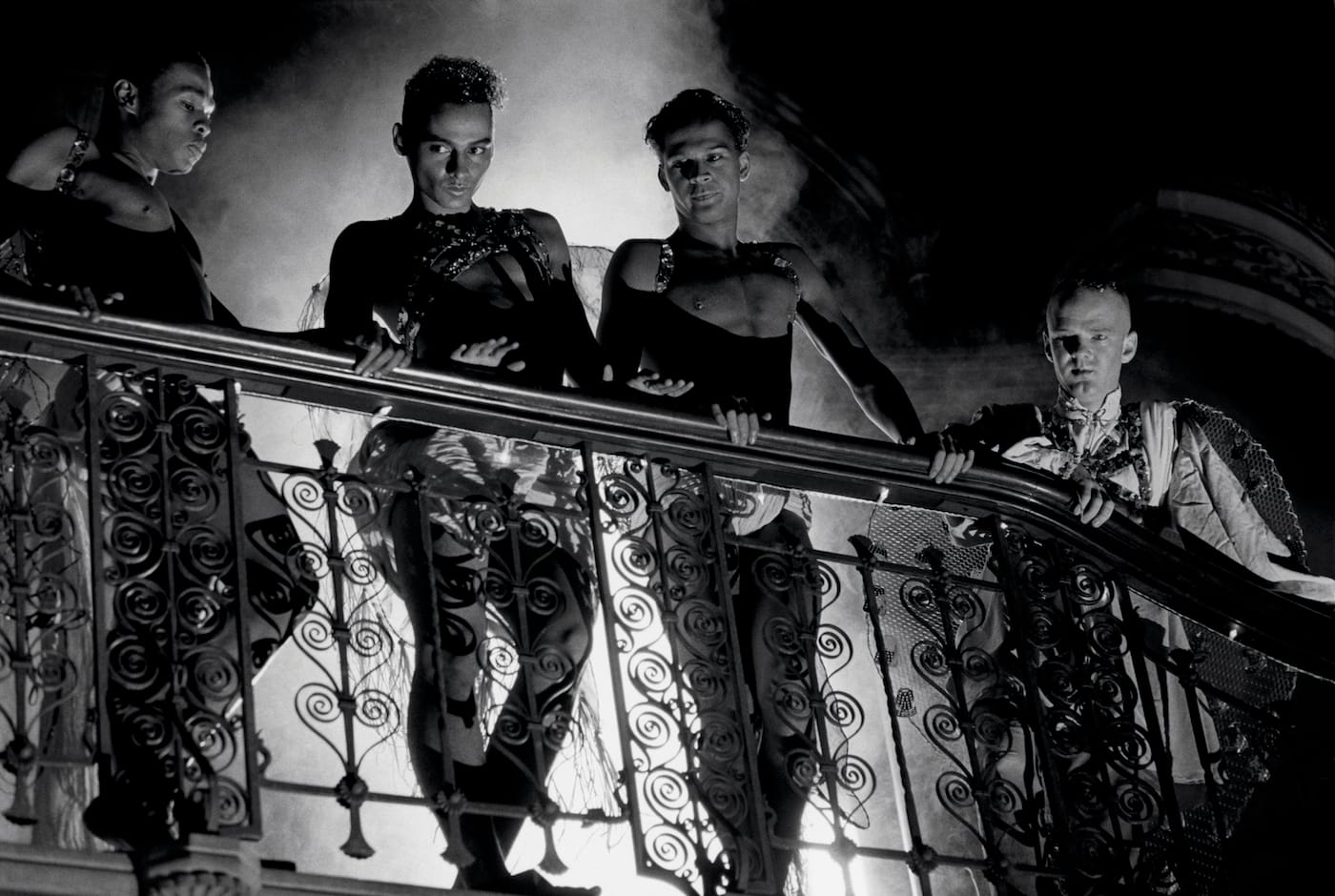 Looking for Langston, an homage to Harlem Renaissance poet Langston Hughes, includes stills from Julien’s 1980 film of the same title, shot in London but set in the heady New York of the 1920s when black culture was bourgeoning in Harlem and the Jazz age was in full swing. The film centers around a group of gay men from the upper echelons of society who are gathered at a wake, interspersed with one of the guest’s fantastical dream sequence. “Film Noir Staircase” (1989/2016) depicts a well-dressed man ascending a staircase, his gaze cast upwards, looking to something or someone beyond the frame, highlighting Julien’s mastery of composition. The central focus of the photograph is not the man’s figure, but his face, contrasted against the shadow of his pants leg. The notion of the traditional portrait is subverted, and instead our eyes are drawn upward, mirroring the man’s movement and leading us to the unknown subject. A searching quality permeates Julien’s work that we are here invited to experience a nostalgia for something long gone, muddled with an air of mystery as to what’s to come.