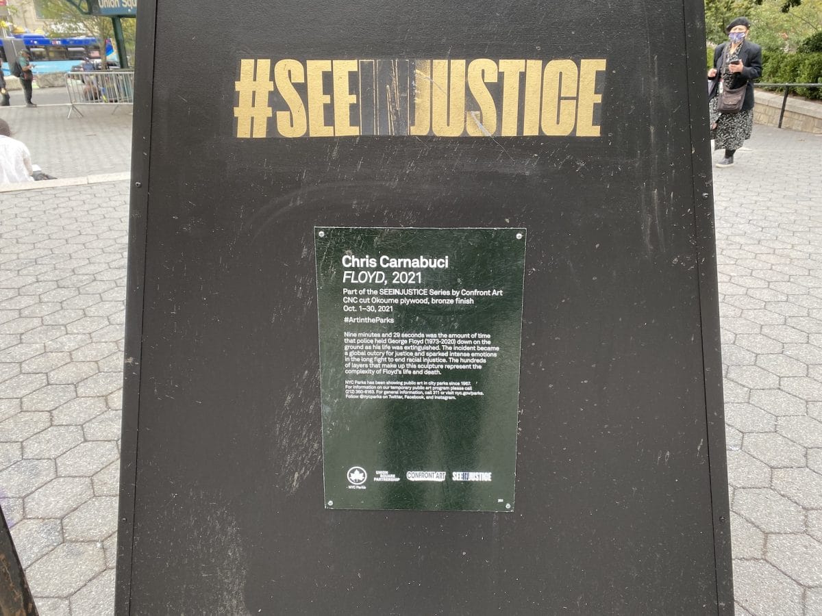#SeeInjustice, described as a public art project that "bridges monuments with a movement," will remain in Union Square Park through October 30. The sculptures will then travel to other cities and ultimately sold to benefit charity, saidLindsay Eshelman, who co-founded Confront Art withAndrew Cohen.