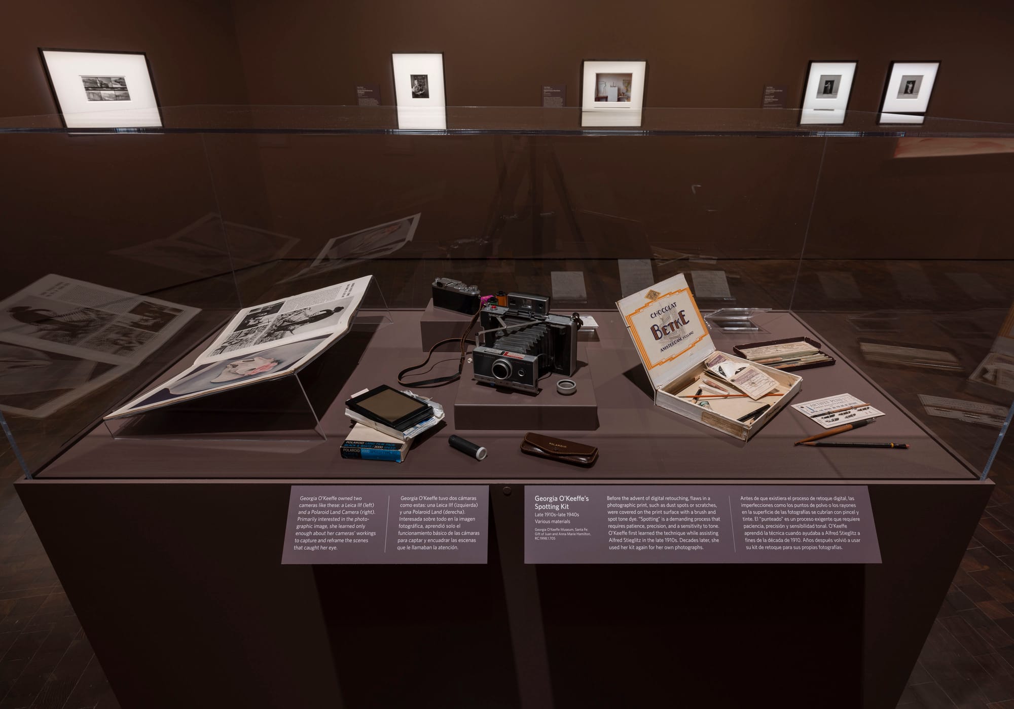 Throughout the exhibition are O’Keeffe’s cameras, her spotting kit, notes she took about correct shutter speeds in low light scribbled on a notepad from The Waldorf-Astoria, as well as many images she took of friends or images taken of her with friends. It's here that this exhibition about her creative process also illuminates aspects of her as a human being, offering a slight reframing of O’Keeffe herself, in changing light.