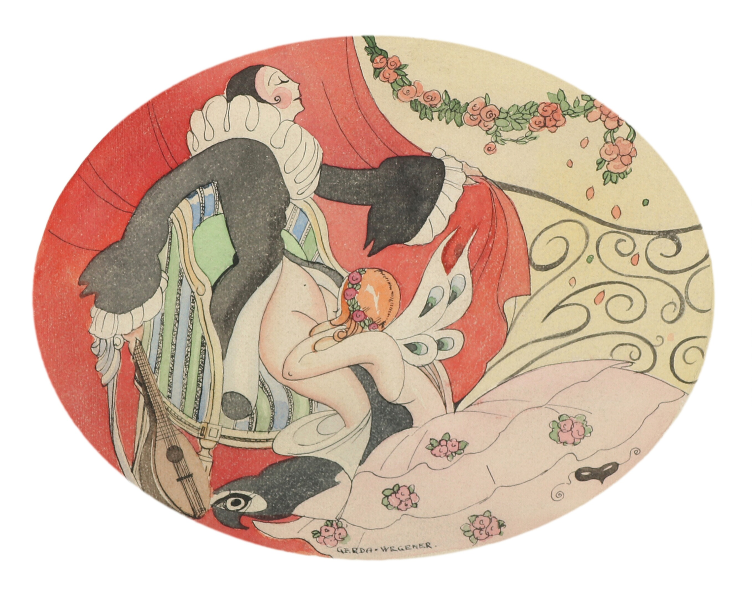 In art and life, early 20th-century painter, illustrator, and cartoonist Gerda Wegener (1886–1940) upended binaries with aplomb. Working in a signature style that was part Art Deco and part Art Nouveau, the Danish-born artist explored fluid notions of beauty, pleasure, and identity. Her elegant works on these themes ranged from glamorous portraits of her partner Lili Elbe — one of the first people in modern history to undergo gender-affirming surgery — that were exhibited in the salons of Paris and even purchased by the French state, to graphic illustrations of sex that celebrated women's pleasure and featured in Casanova’s memoirs or books of erotic poetry. Though Wegener largely faded into obscurity — her aesthetic fell out of fashion in her lifetime, and in her final years she sold postcards for a living — there has been a resurgence of interest in her life and work in recent years, perhaps most prominently in 2015, when she was the subject of an exhibition at Copenhagen’s Arken Museum and appeared as a supporting character in the Oscar-nominated film The Danish Girl. (This week, the actress who played Wegener responded to some of the criticisms levied at the 2015 film, which cast a cisgender actor as Elbe.)