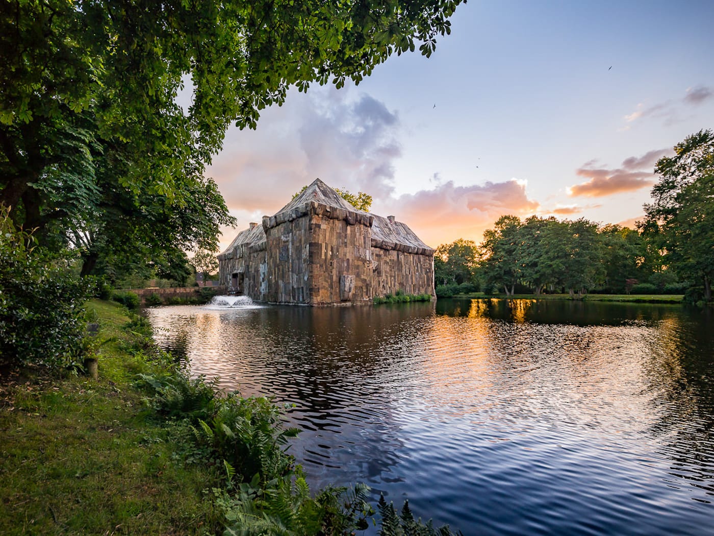 Art & Coal addresses its main theme retrospectively, but also seeks to look forward, to reflect on life after coal. To create the most provocative of the featured works, called “Coal Market” (2018), Ghanaian artist Ibrahim Mahama transformed a moated castle into a work of art by covering it with jute charcoal sacks. Built in 1243, Strünkede Castle is a relic from the pre-industrial times and much loved by the people in the city of Herne, an old coal mining city. The coarse sacks that cover the castle are produced in Asia, and are marked with the code of the companies that used them, symbolizing globalized trade. They remind the viewer that coal will still be produced in Asian and African countries, and will likely be imported back into Germany.