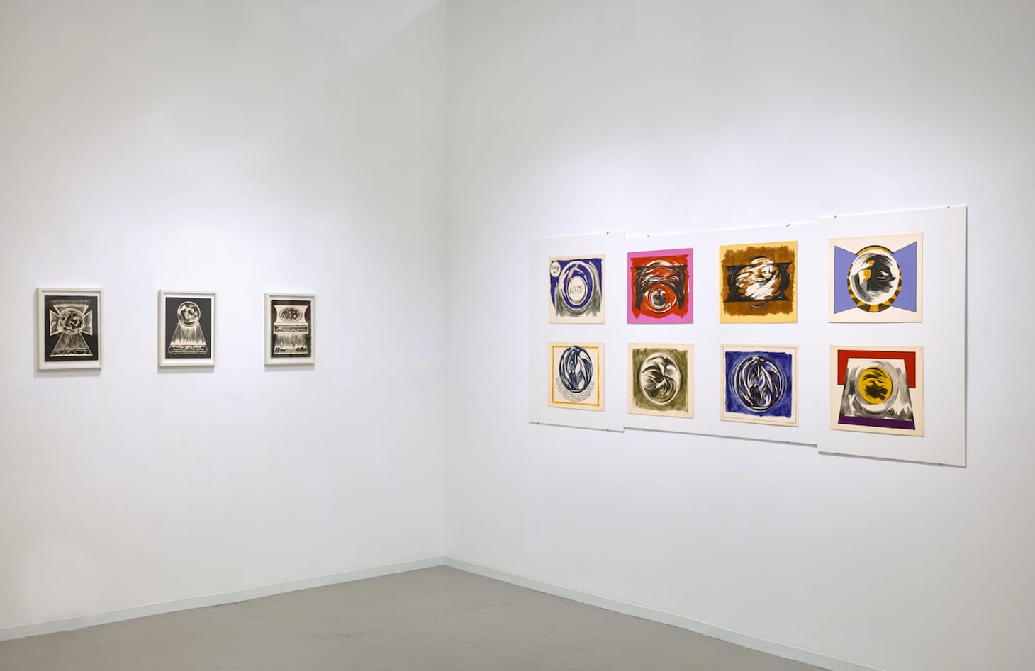 In Icons, the suite of lithographs Gechtoff made at Tamarind, at the invitation of its founder, June Wayne, she explored the circle, sometimes with gestural, leaf-like forms inside. In other works, the gestural lines are outside the circle, enclosing it or floating above it like a bridge whose supports partially frame the circle on the left and right side. In these pieces, she reveals her interest in abstract icons and architectural structures. Her other great interest is in the dance that she engendered between expansive movement and containment.