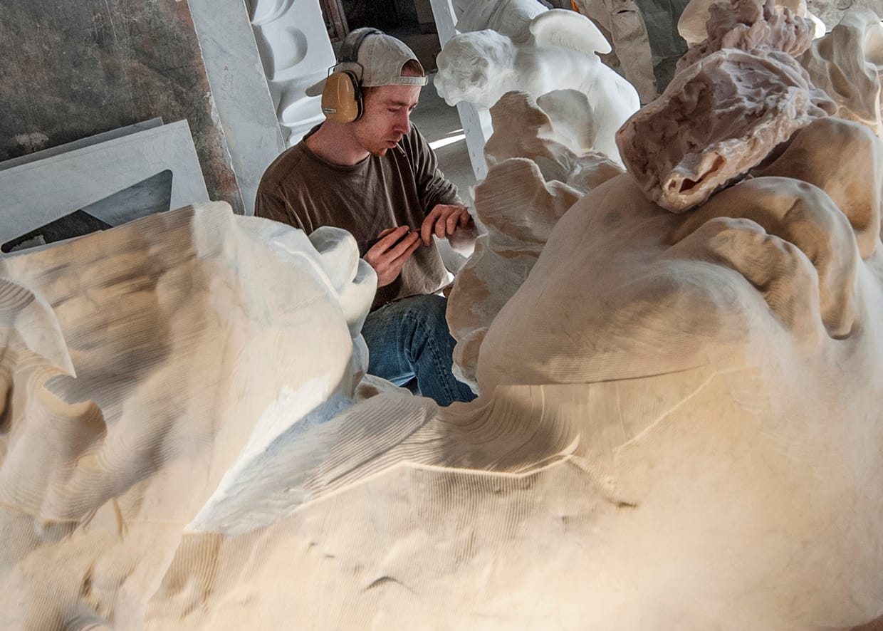 “I felt that these extraordinary skilled artisans deserved to have the spotlight turned on them and had hoped that they would be pleased to have their pictures shown in New York,” Hetflaisz explained. “Most have been, and I have had dozens of positive messages and thanks. Others, however, are more concerned about how the artists, whose pieces they are seen working on, will react. Many wanted only their first name and the name of the studio in the photo captions. The world of the artisans in Pietrasanta is an ego-free zone.”