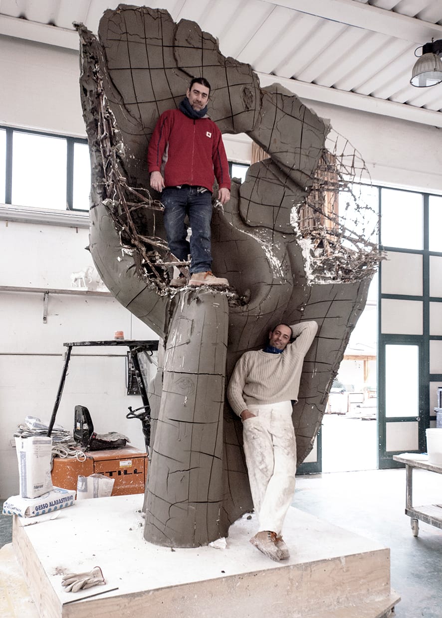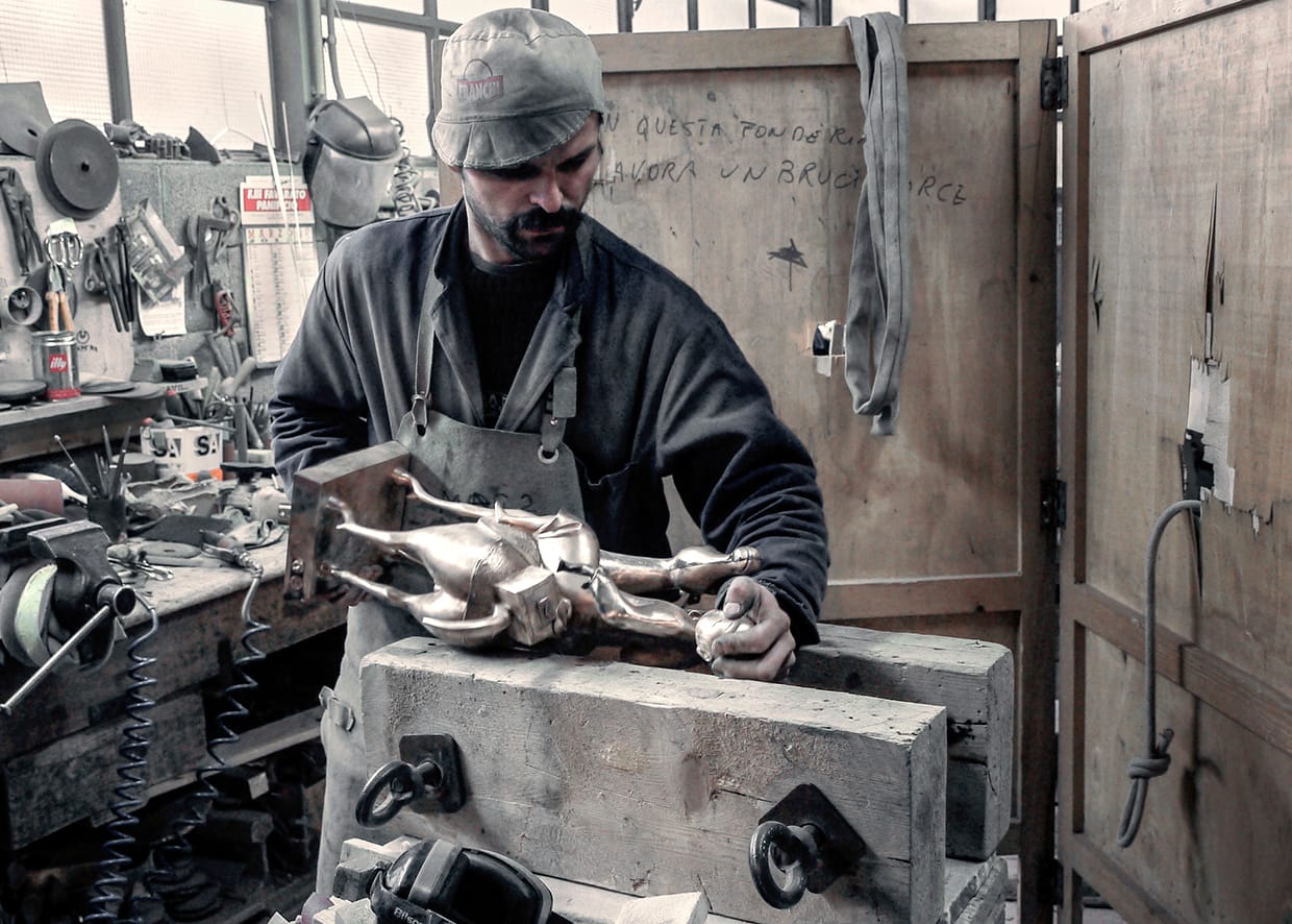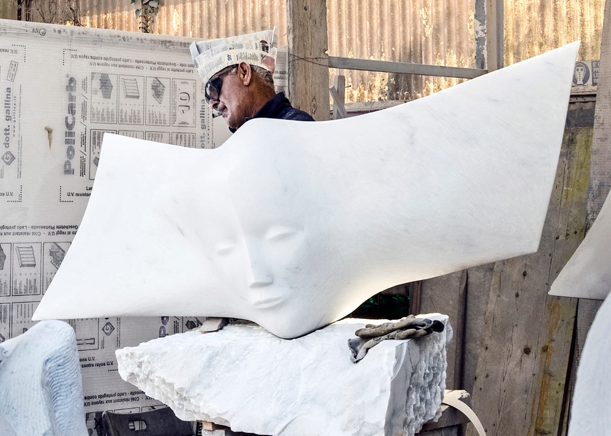 Pietrasanta has a storied history: Michelangelo sought marble there in 1518 on the orders of Pope Leo X. Since then, countless artists have made their way to the Tuscan town, which has maintained its artistic industry and reputation over the centuries. Today dozens of marble studios and bronze foundries dot Pietrasanta, and the artisans — or artigiani, in Italian — who work there realize pieces for the likes of Damien Hirst, Marc Quinn, Fernando Botero, Helaine Blumenfeld, and others.