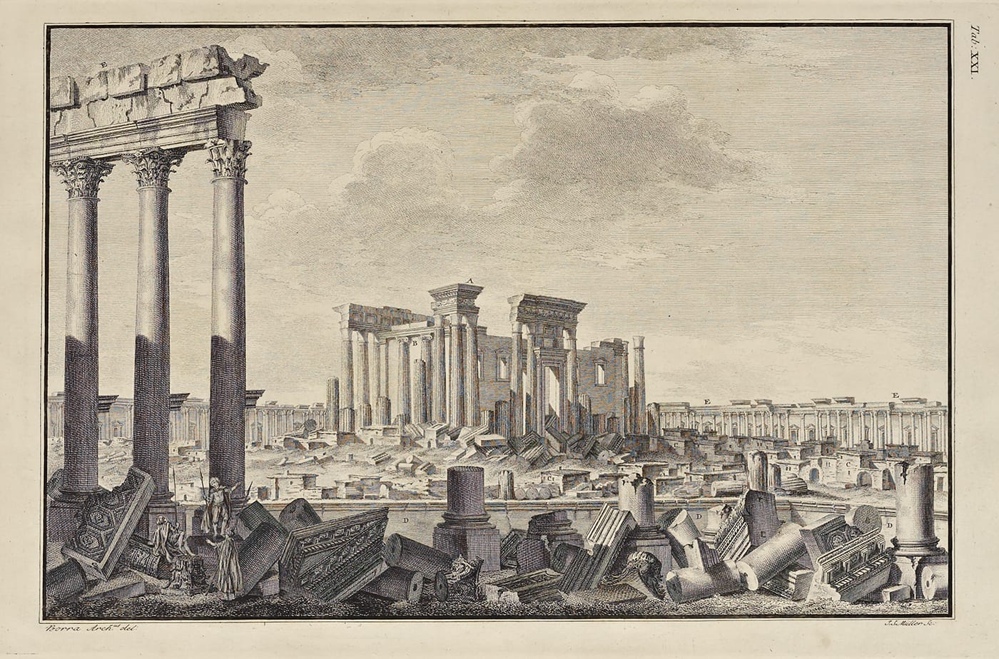 Satellite images, cellphone images, and video footage spliced together by members of ISIS — these are the familiar visuals we see that emerge out of a war-torn Palmyra today. They record how much its landscape has changed only in the past two years as militants have destroyed much of the city’s ruins, erasing what stood for centuries. But Palmyra’s visual record extends far, far back, and it is through early drawings, prints, and photographs now made available online that we may better understand its history, which often risks getting lost in present-day discourse focused not only on warfare but also on “saving” cultural heritage.