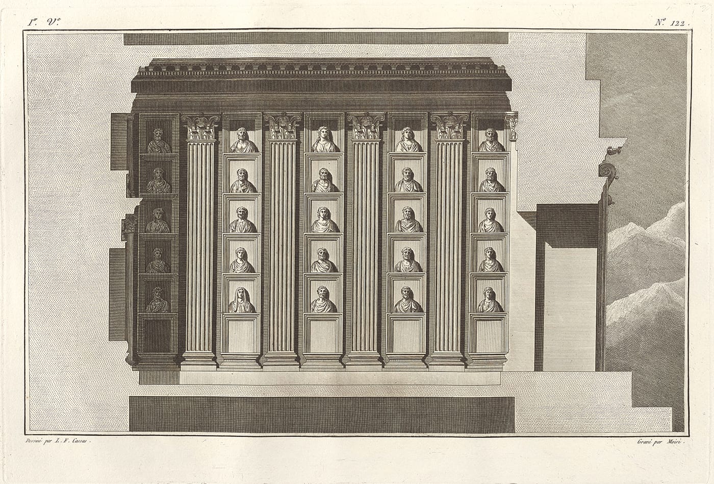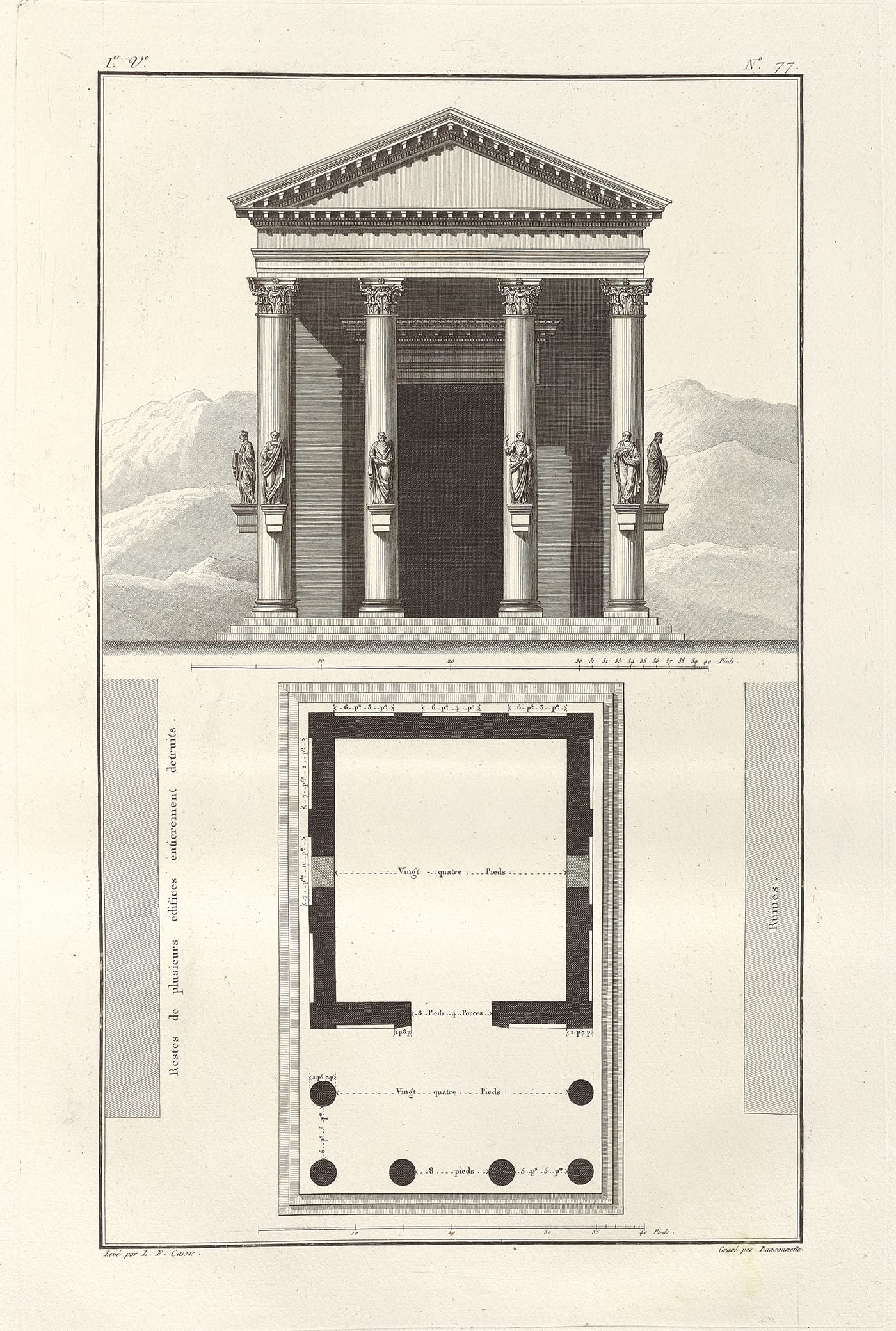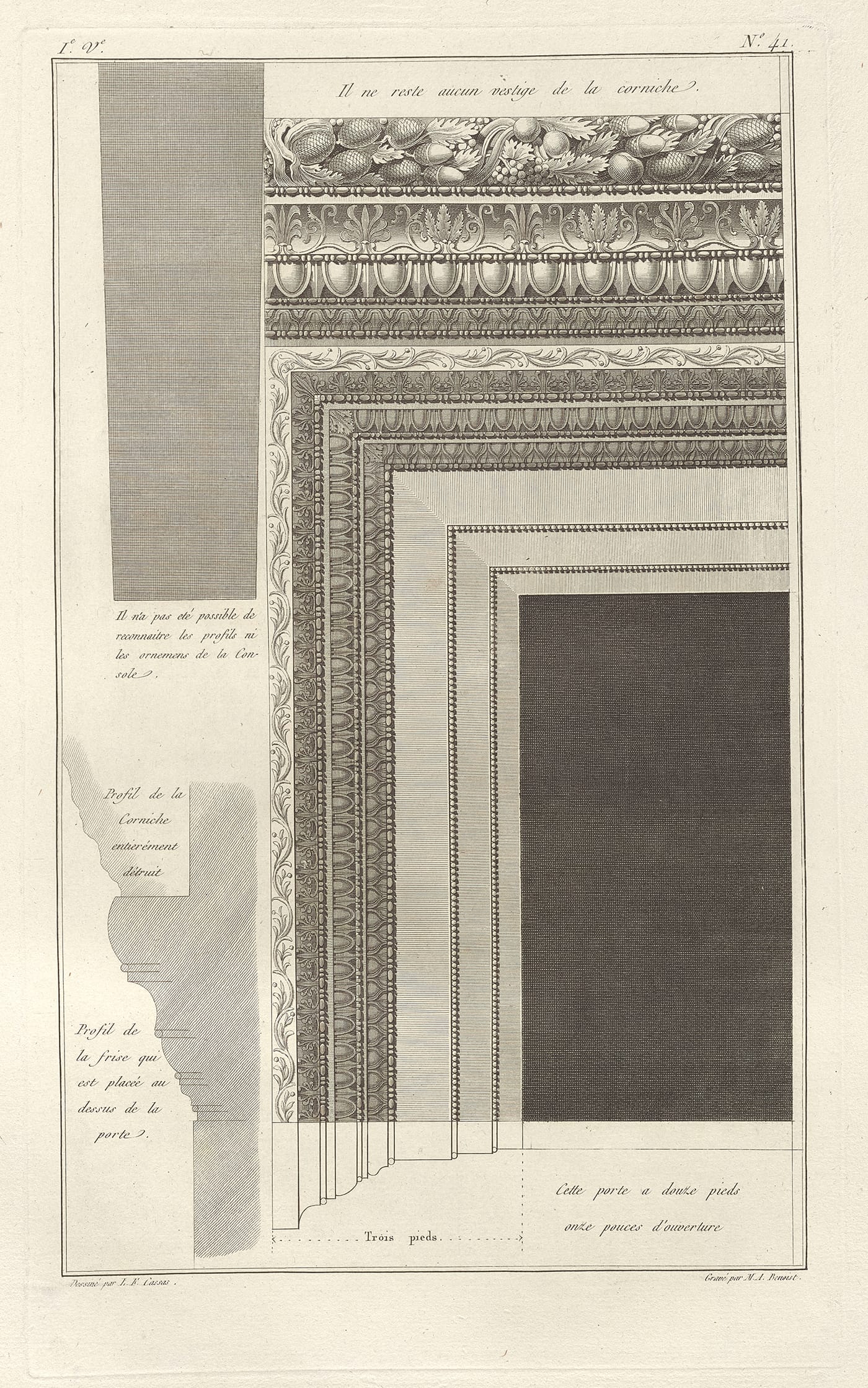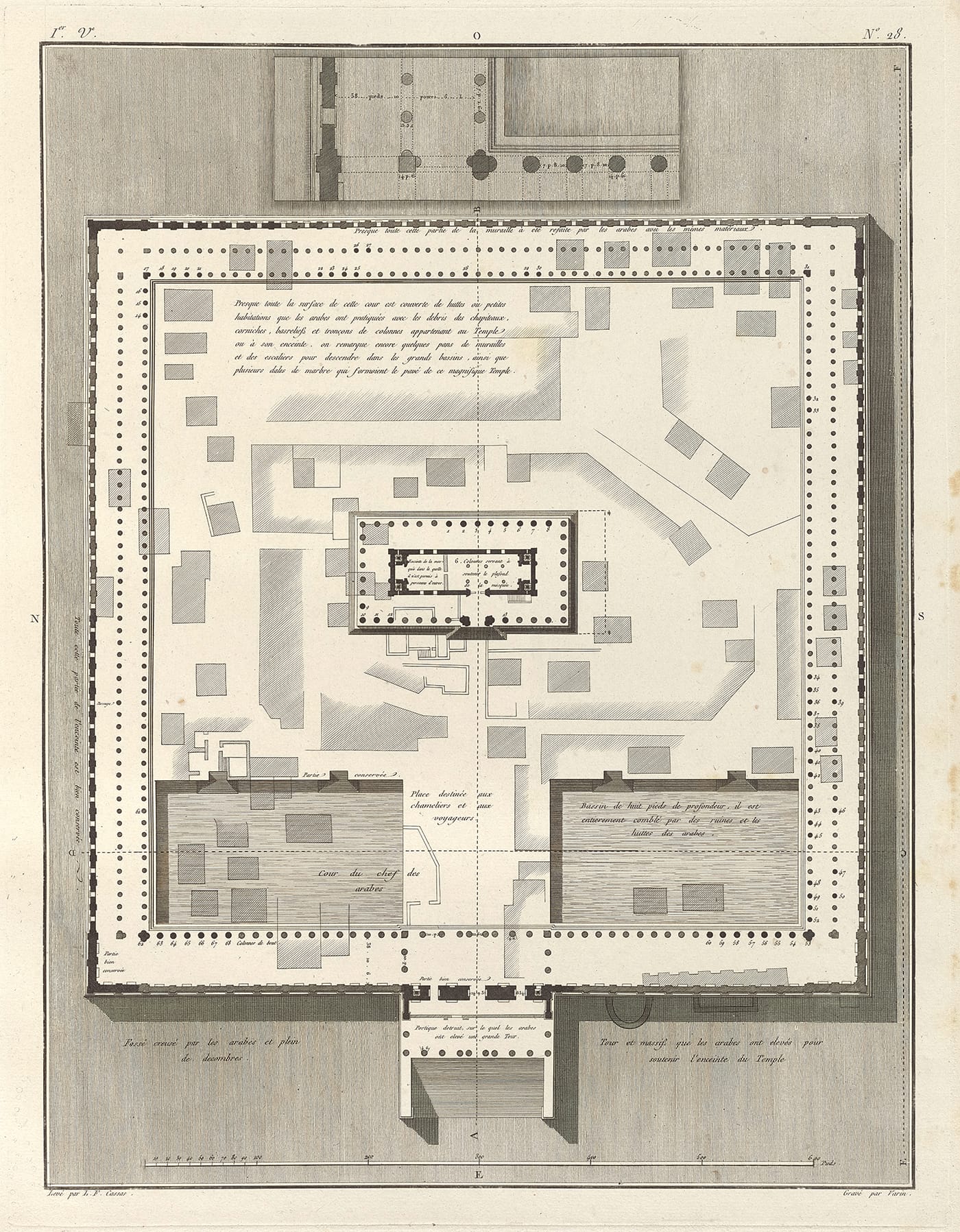 Vignes photographs are, of course, the most definitively accurate representations of a historic Palmyra, but other illustrations in the exhibition offer a glimpse of how the city may have looked — and how it was perceived by the artists and explorers who passed through it after its “rediscovery” by the West in the late 17th-century. After English traders in Aleppo undertook an expedition in 1691, Western scholars and travelers began arriving to see the wondrous metropolis and its Greco-Roman architecture with their own eyes. GRI’s archives contains many etchings of the ruins and of specific decorative details; many of these are rendered after the works of Louis-François Cassas, who arrived to Palmyra in 1785 and left with detailed notes recording his observations. He made over 100 large-format etchings of the site and produced an expensive but popular three-volume book. They are important documents to study, having gone on to strongly influence the architectural and decorative styles of Western Europe — they remind of how the legacy of Palmyra survives even in our built environment.