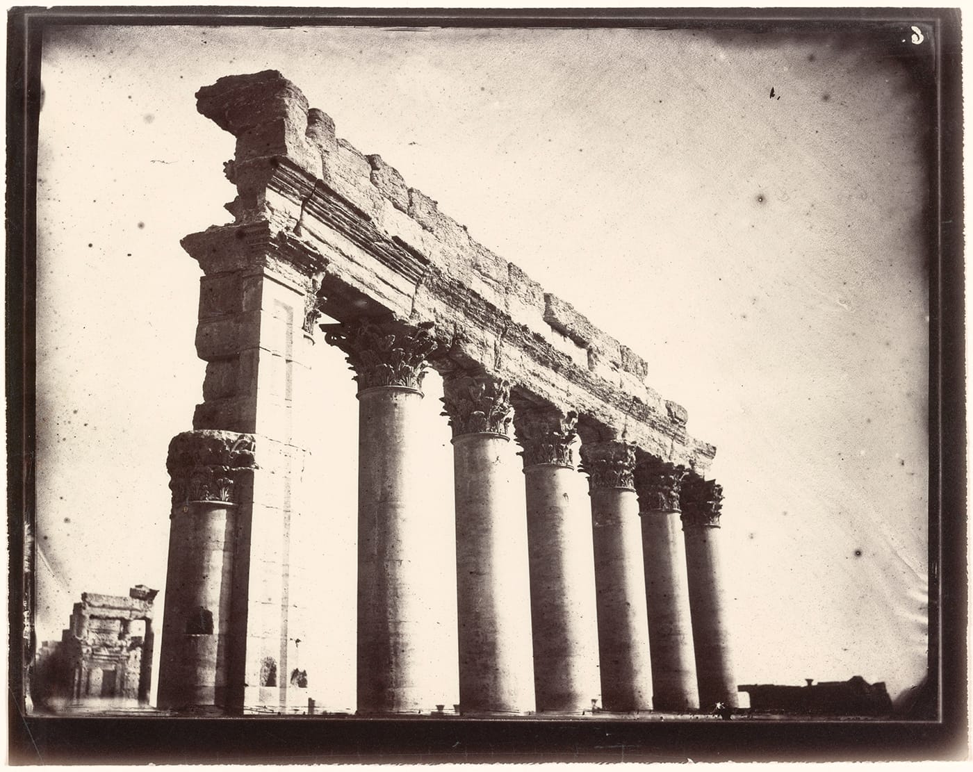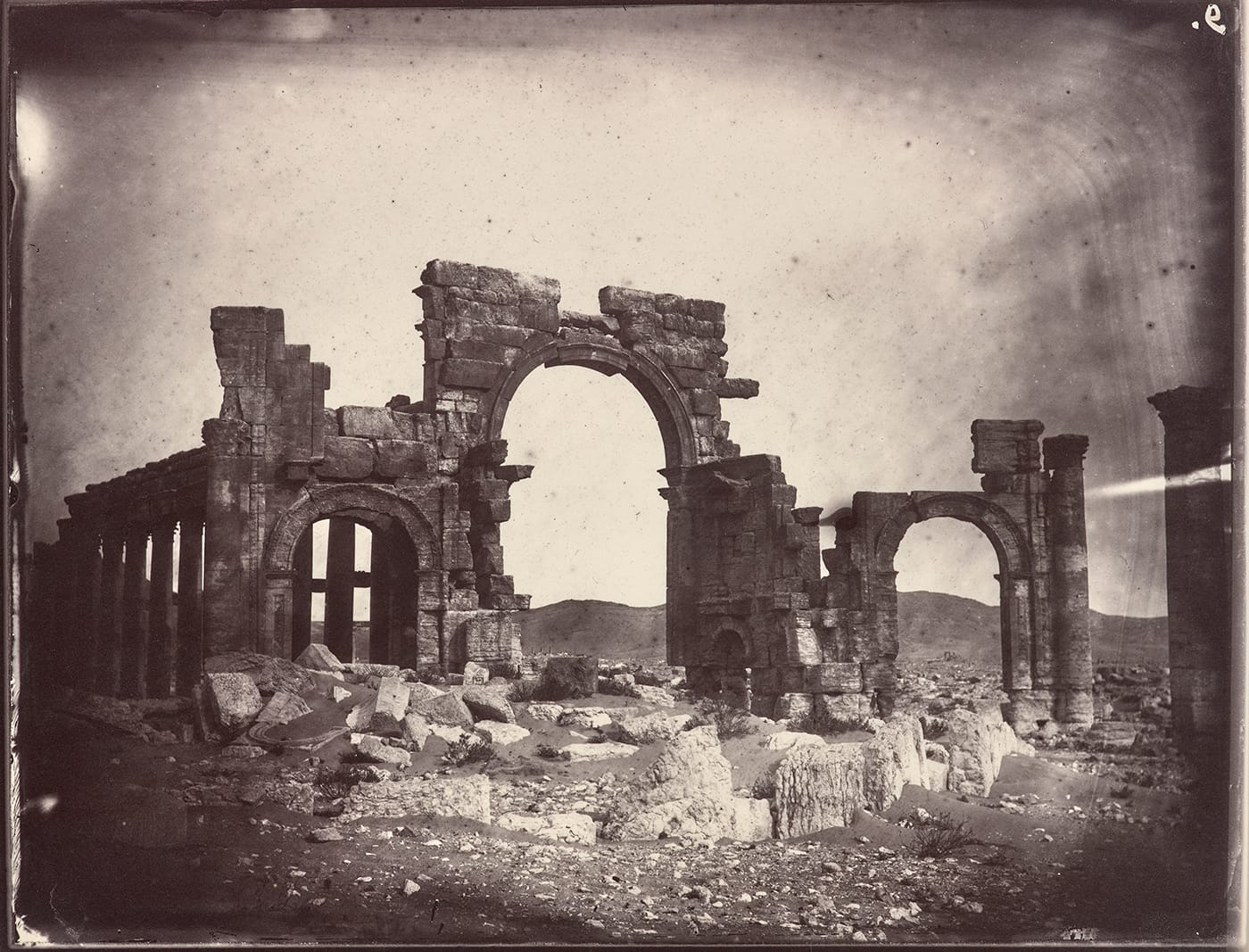 This archive resides on The Legacy of Ancient Palmyra, an online exhibition the Getty Research Institute (GRI) launched this week as a tribute to the legendary caravan city. Intended as both a reference and teaching tool for the public, it is divided into sections that relay the history of Palmyra, from its status as a prominent cosmopolitan center of trade during the 1st and 3rd centuries CE to its present-day period threatened by violent destruction. Much of the historic imagery arrives from GRI’s own collections, including the earliest known photographs of Palmyra captured in 1864 by French naval officer Louis Vignes. GRI acquired these rare albumen prints in 2015, the year ISIS seized the city and quickly moved to obliterate its structures, viewing them as blasphemous.