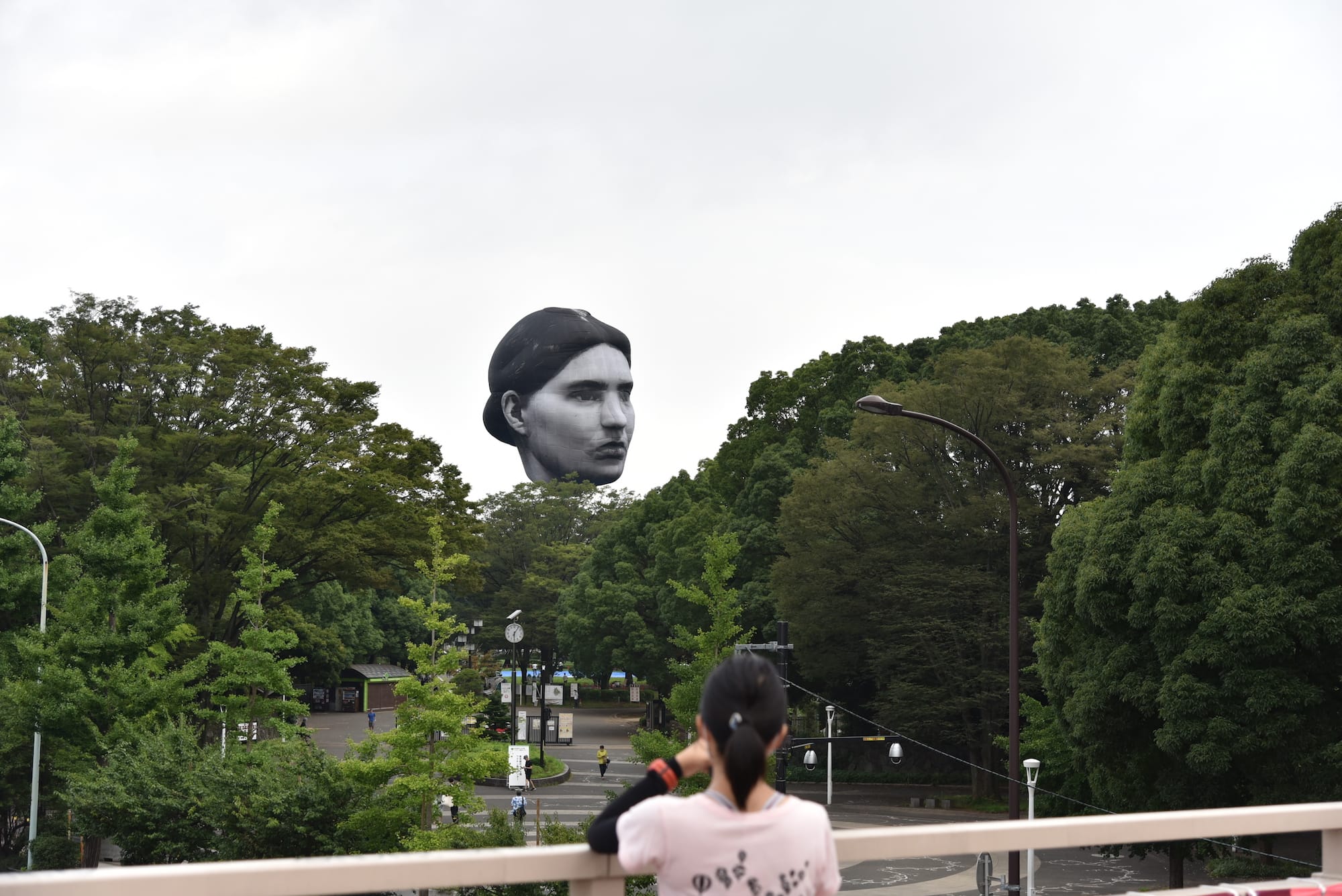 The eerie aerial piece was created by the artist collective 目 ("Mé") and features an anonymous face chosen from over 1,000 submissions.