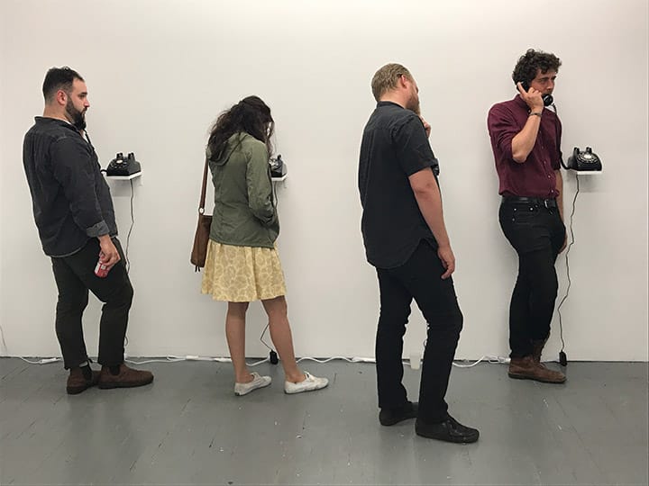 Looking at Confession from different angles, I can’t help but take note of the two sides of the show: the cool exterior, including the remote technology, advance publicity, and even the savvy art crowd consuming it, versus the warm inner guts of the piece, voiced by the anonymous humans spilling their secrets. In an age of “alternative facts,” it can be difficult to parse truth from fiction, and the distancing methods of the project leave me to wonder: Could the confessors really be actors? Is the audience being played, culpable in some way for its own prurient interests and voyeurism? I’m not sure it matters entirely in either case; after you pick up a phone and experience the humanity of the colorful characters — with their distinct intonations, emotional states, and vulnerabilities — the piece truly lights up.