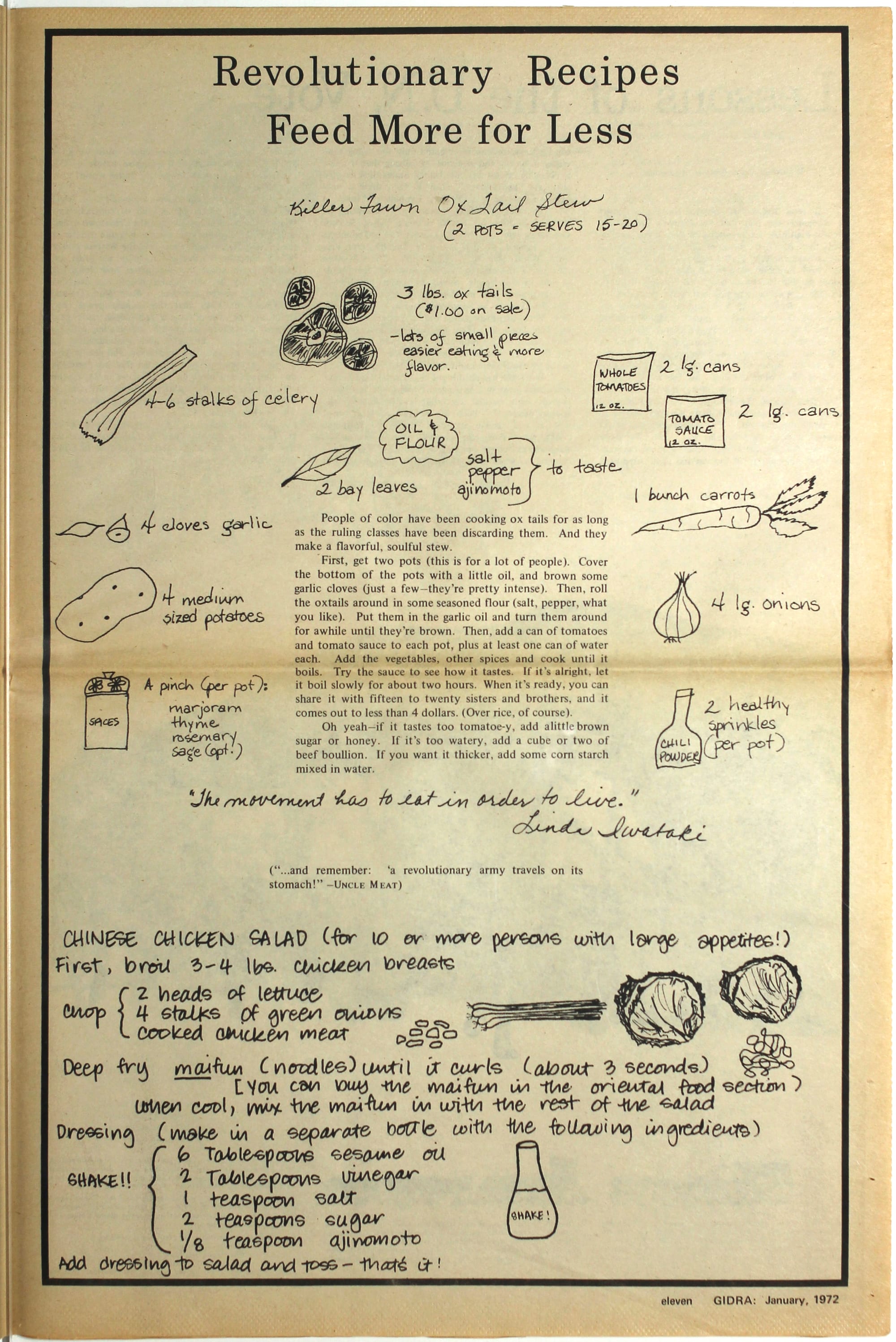 What started as a monthly paper geared towards Asian American students at UCLA soon expanded to the greater Los Angeles community. You can see that shift happen across the design and content, as the paper became more action-oriented, focused on tangible ways to deepen Asian unity and increase critical engagement with the political realities of the time (the magazine’s entire archive is available to view online via Densho, the Japanese-American historical repository). As Murase writes in the essay “Toward Barefoot Journalism,” which appeared in Gidra’s final issue in 1974, changing the scope of the paper from campus to community led to pieces that moved away from only recounting “what happened” to work that outlined “what we can do.” Articles spoke out against the gentrification of Little Tokyo in the 1970s, examined the issue of sexism, and shared tips for starting a community garden.