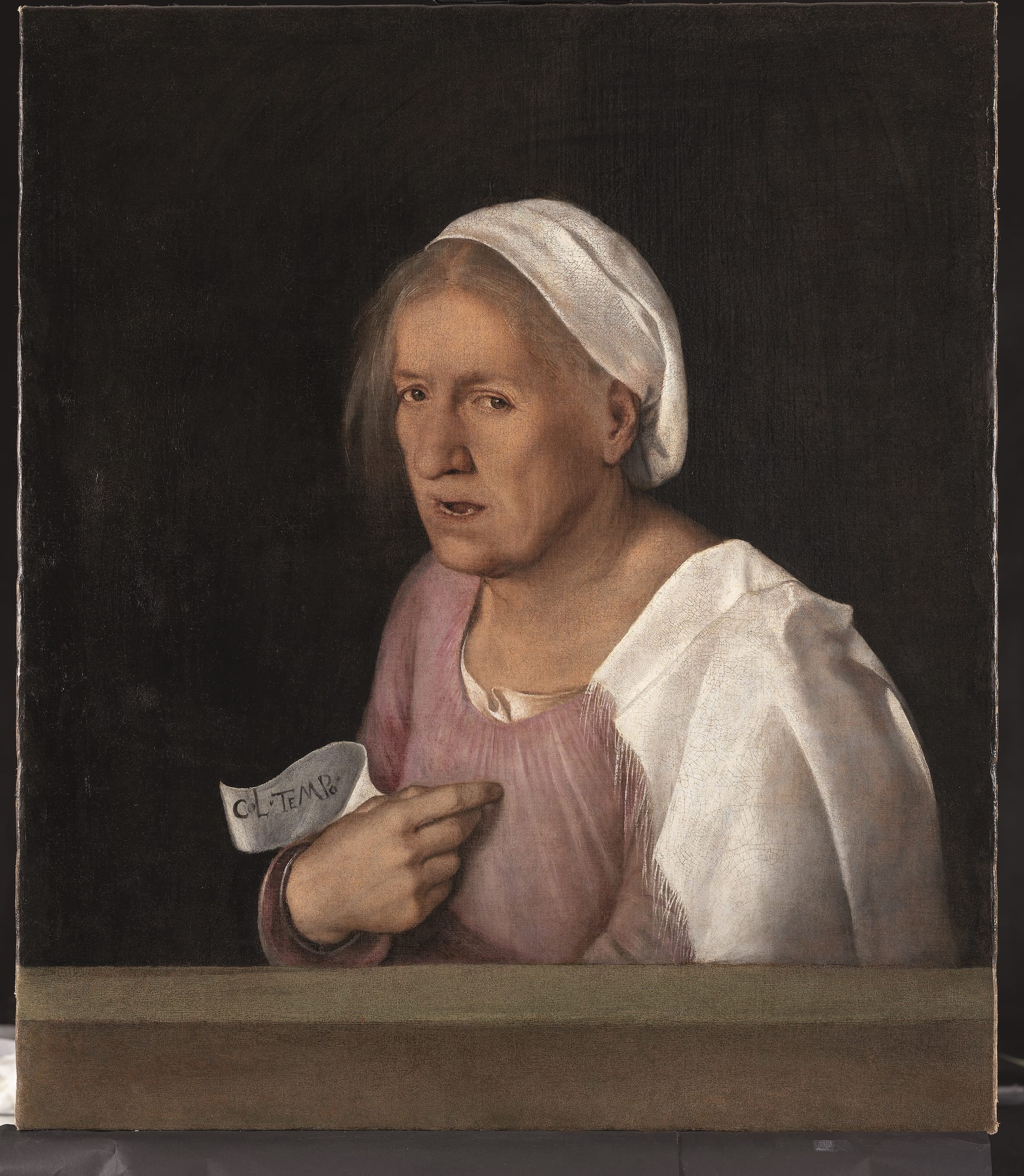 Take, for instance, “Laura,” a portrait from 1506, where the ambiguity of the sitter’s gesture makes it impossible to tell whether she’s revealing her bare breast or covering it. In another painting, “La vecchia” (c. 1506-7), the old woman speaks to the viewer while gesturing towards her heart, but it’s impossible to know what she’s saying. And in “Venus” (c. 1510-11) — a reclining nude completed by Titian after Giorgione’s untimely death — the woman’s closed eyes and curled hand suggest that she’s pleasuring herself, but it’s impossible to be sure.