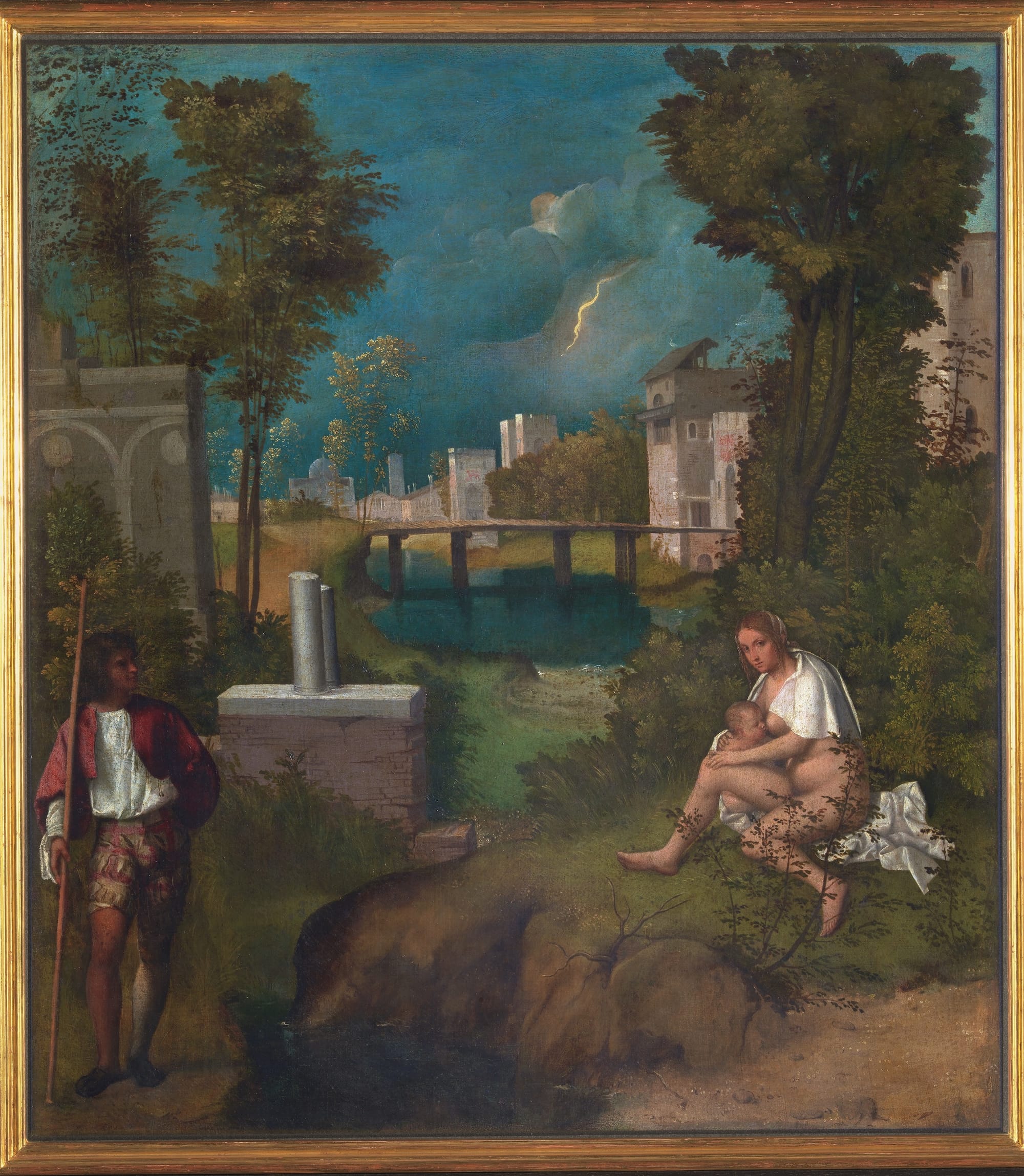 Giorgione was from the small town of Castelfranco. Details about his past are few, though Nichols’s research suggests that the artist spent time in prison as a teenage delinquent. Giorgione arrived in Venice around 1500, where he catered to a small group of wealthy patrons. He was commissioned for very few public projects and remained an outsider to the Venetian art world dominated by monumental religious and patriotic works.