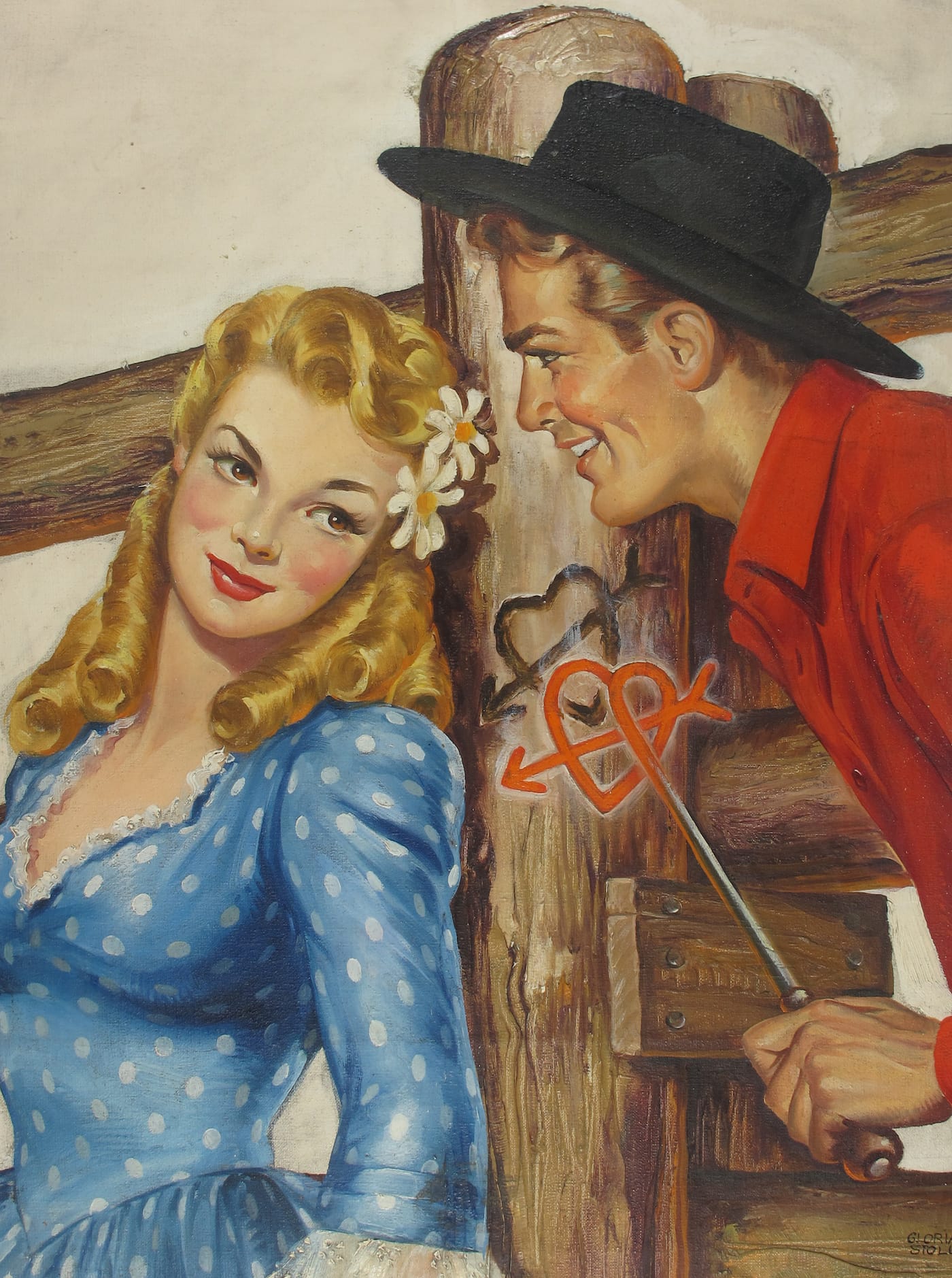 The Norman Rockwell Museum in Stockbridge, Massachusetts, is chronicling her decade-long pulp career in Gloria Stoll Karn: Pulp Romance. It features over 50 original artworks, as well as vintage publications, and her student work in which DeSoto saw such promise. Pencil sketches show how ideas were developed into final paintings for romance, western, and detective stories. “We were drawn to the inspiring story of this gifted artist, who fearlessly and successfully ventured into an uncharted new world,” Plunkett said. “Her outstanding accomplishments, greatly enjoyed by readers, also advanced opportunities for other women illustrators hoping to establish careers in the field.”