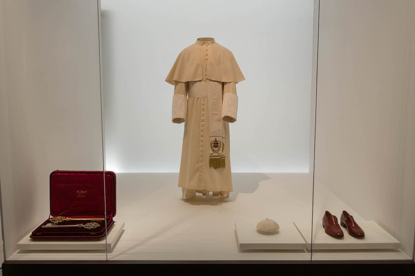 In the vein of discussing the old and the new, it’s interesting to note that past popes are frequently invoked throughout this exhibition, while the current one is not. Pope Francis is suspiciously absent from the narrative of this exhibition — Pope Benedict’s red Prada shoes were invoked in Bolton’s statements on the impetus of this exhibition, and Pope John Paul’s cassock is on display. Francis is a radically different head of the Catholic Church, one who has stirred ire and controversy for his progressive views (by Catholicism’s standards, anyway), and one who eschews too much ostentation. He wears black shoes, not red. That may seem insignificant, but draws a clearer line between him and the people (peasants are symbolically associated with drab colors, especially in footwear — ask van Gogh) versus self-deifying aspirations (the red shoes represent Christ’s blood.)