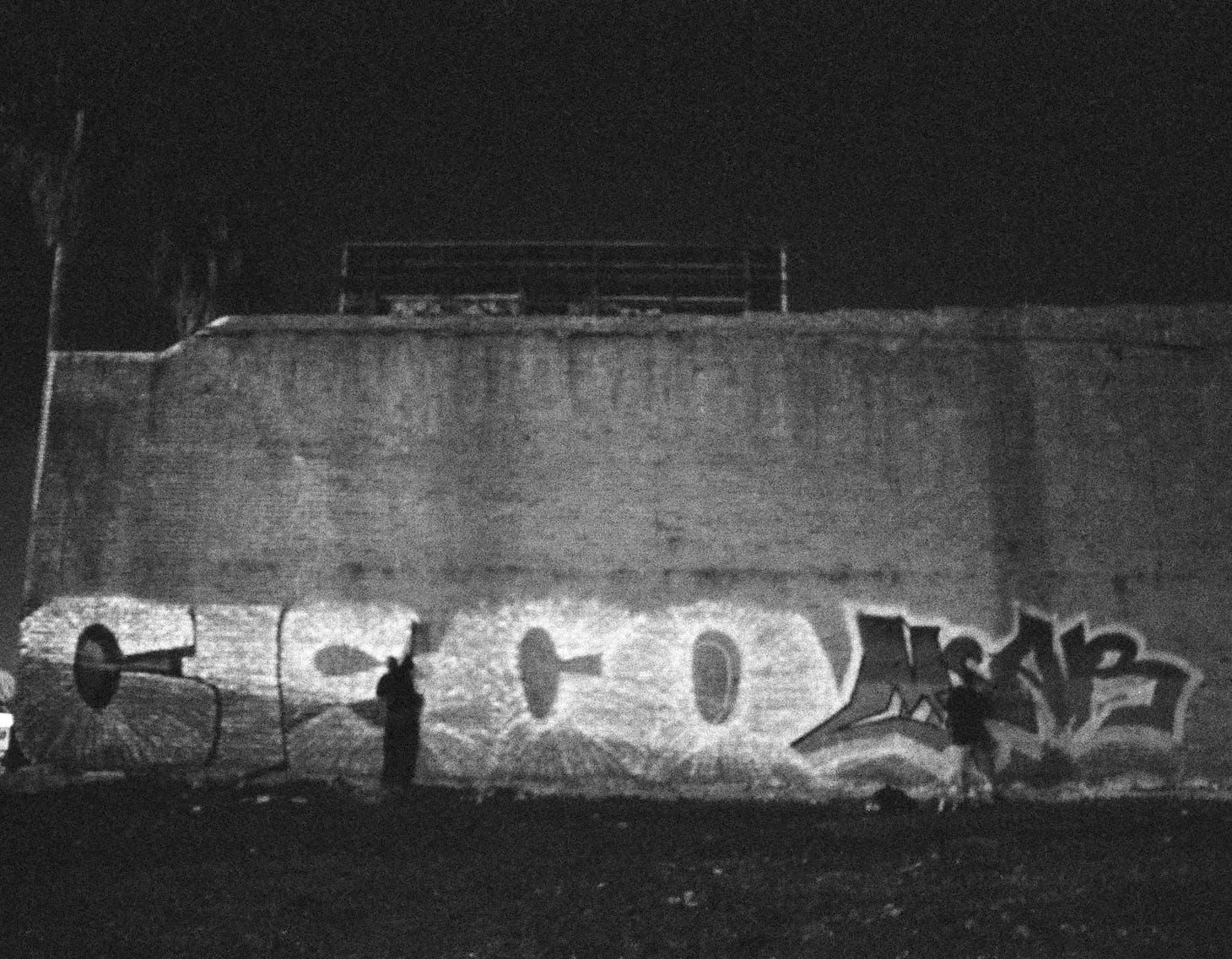 You have to use your whole body to make your letters proportionate and stylistically coherent, your pointer finger maintaining the perfect pressure to avoid an inconsistent flow of paint, the arm opposite your writing hand extended as counterbalance, your legs spread slightly more narrowly than shoulder width for stability, your knees bent just enough to allow you to move vertically through each letter, and your weight over the balls of your feet to allow you to move smoothly along the wall horizontally, all while relying on your hearing and peripheral vision as you watch out for possible gangsters, cops, or heroes who want to stop you, jail you, kill you.