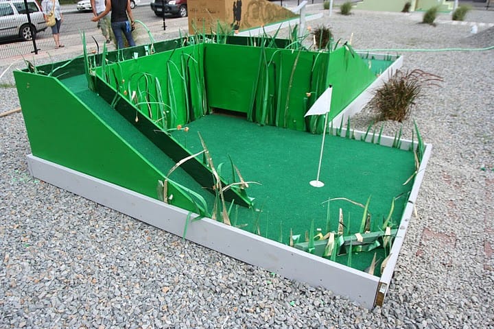 It feels slightly anachronistic to focus on the participatory aspects of a mini-golf course installation as a form of interactive art if for the only reason that we are living in an era of increasing interactivity through higher forms of technology. However, it is just that context that makes this type of installation so vital.
