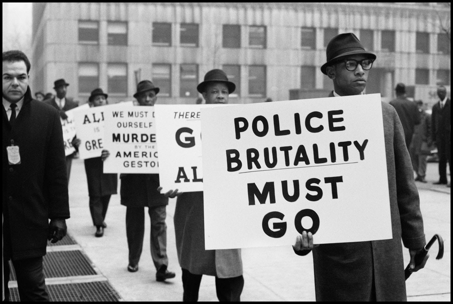 At the 24th Street location, photographs of Civil Rights demonstrations abound alongside portraits of political icons including Malcom X, Ethel Muhammad Sharrieff, and Martin Luther King Jr. While the Civil Rights Movement of the 1960s is often imagined as a one-time event that ended before the 21st century, viewing Parks’s photographs in 2021 after a series of recent uprisings against police brutality tells a different story. A 1963 protest sign asserts that “Police Brutality Must Go,” echoing the contemporary political climate, in which the excessive use of force against Black people remains routine. The resonance of hands raised in the air is stark; try comparing Parks’s documentation with the “hands up, don’t shoot” protests after the murder of Michael Brown in 2014, for example.