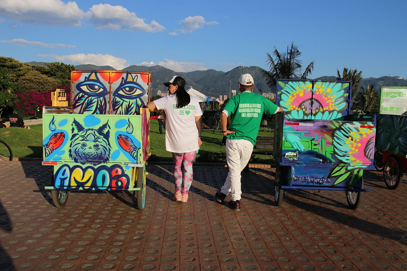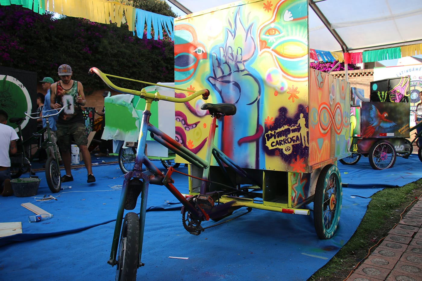 On a brisk evening in late March, Marysol Mogollon, a waste picker for 21 years, displays her vividly painted cart at the third edition of Pimp My Carroza in Bogotá. While a massive sound system plays reggae, dancehall, and rap in the background, more than 40 of the Colombian capital’s most recognized graffiti artists work alongside informal recyclers. In comparison to the usual wooden pull carts spotted in Bogotá’s urban landscapes, Mogollon’s cart stands out; it’s painted in brilliant red, greens, and yellows, overlaid with detailed portraits done in stencil.
