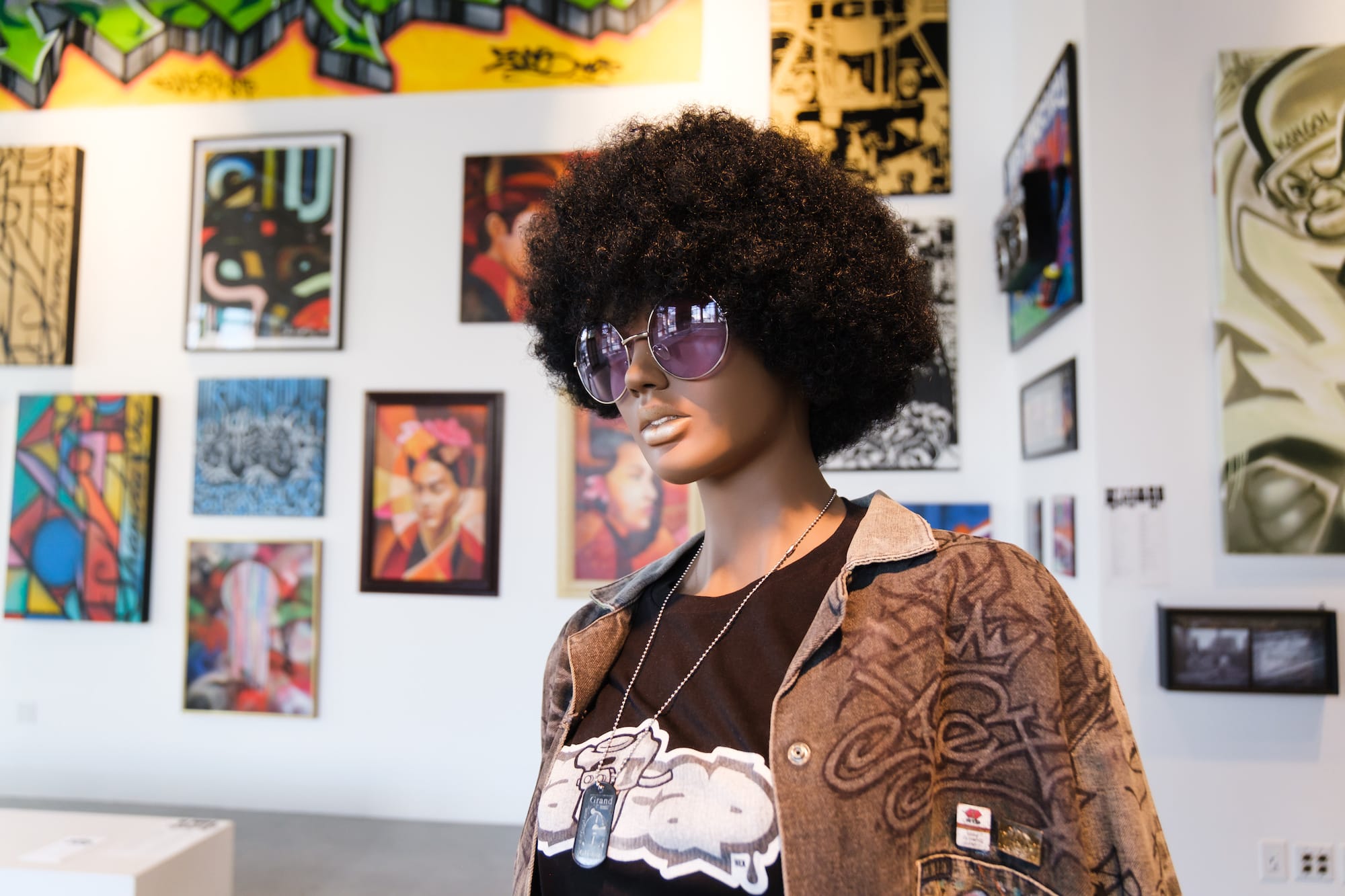“Before it was Radiotron, it was Radio Club. We went there for breakdancing … I was 13 or 14,” Defer said. Artists such as Ice-T would perform there, and Madonna could be seen partying inside. It was the location of the 1983 documentary Breakin’ ‘N’ Enterin’ and the 1984 film Breakin’. (Both films featured breakdancer and actor Shabba Doo, who died in 2020. The exhibition includes a memorial portrait by Thundr.) According to Alvarez, artists painted “Radiotron” above the stage for the movie.