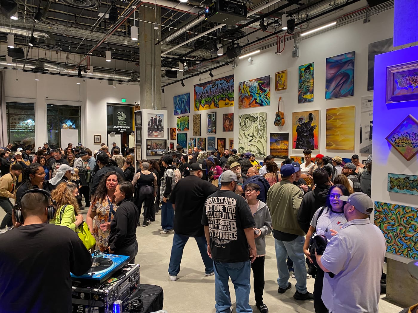GRAFFITINSPIRE, an exhibition curated by Alvarez celebrating the center’s vibrant legacy, opened earlier this month at the Goethe-Institut Project Space just blocks from Radiotron’s former location at 715 South Park View Street. (The original building no longer exists, having been replaced by a strip mall in quintessential LA fashion.) At the opening on May 12, street artists and breakdancers who got their start at Radiotron as teens, now in their 50s, mingled with a younger generation who have followed in their wake as classic hip-hop beats flowed from the DJ’s turntables.