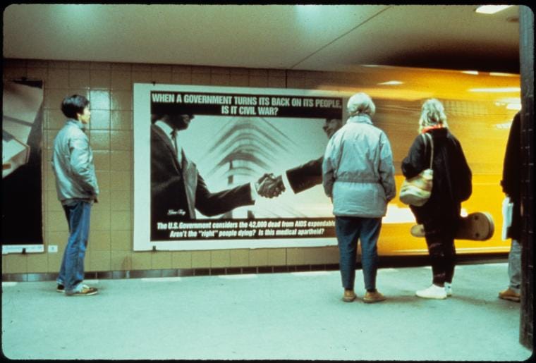Which is to say, it’s not so much that Gran Fury’s work is art or is not art, or is the work of political activists or creative individuals, but instead to point out that it is many things at once and can only be understood by first acknowledging that fact.