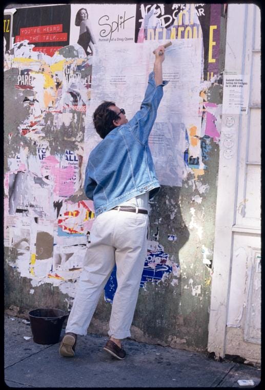 In the past year there has been a tremendous amount of work published and produced on the topic of ACT UP, its many members and affinity groups. For those unfamiliar with the group, ACT UP stands for AIDS Coalition to Unleash Power. It was a collective organization, formed in 1987, whose primary aim was to take direct political action to get those with HIV/AIDS access to medical treatment, to increase research into and education about the disease, and, ultimately, to stop its spread. The organization was built on an anarchic model with no single leader, in which committees and affinity groups could plan and execute their own actions and/or coordinate with the larger group at weekly meetings that took place at what was then the Lesbian and Gay Community Services Center, now the LGBT Community Center in Manhattan’s Greenwich Village. Gran Fury was one of many affinity groups tied to ACT UP, and its particular focus was on spreading ACT UP’s agenda and affecting change through the use of both traditional art forms, as well as advertising techniques. They are most widely known for their stickers and posters, which they often wheatpasted onto the walls of New York.