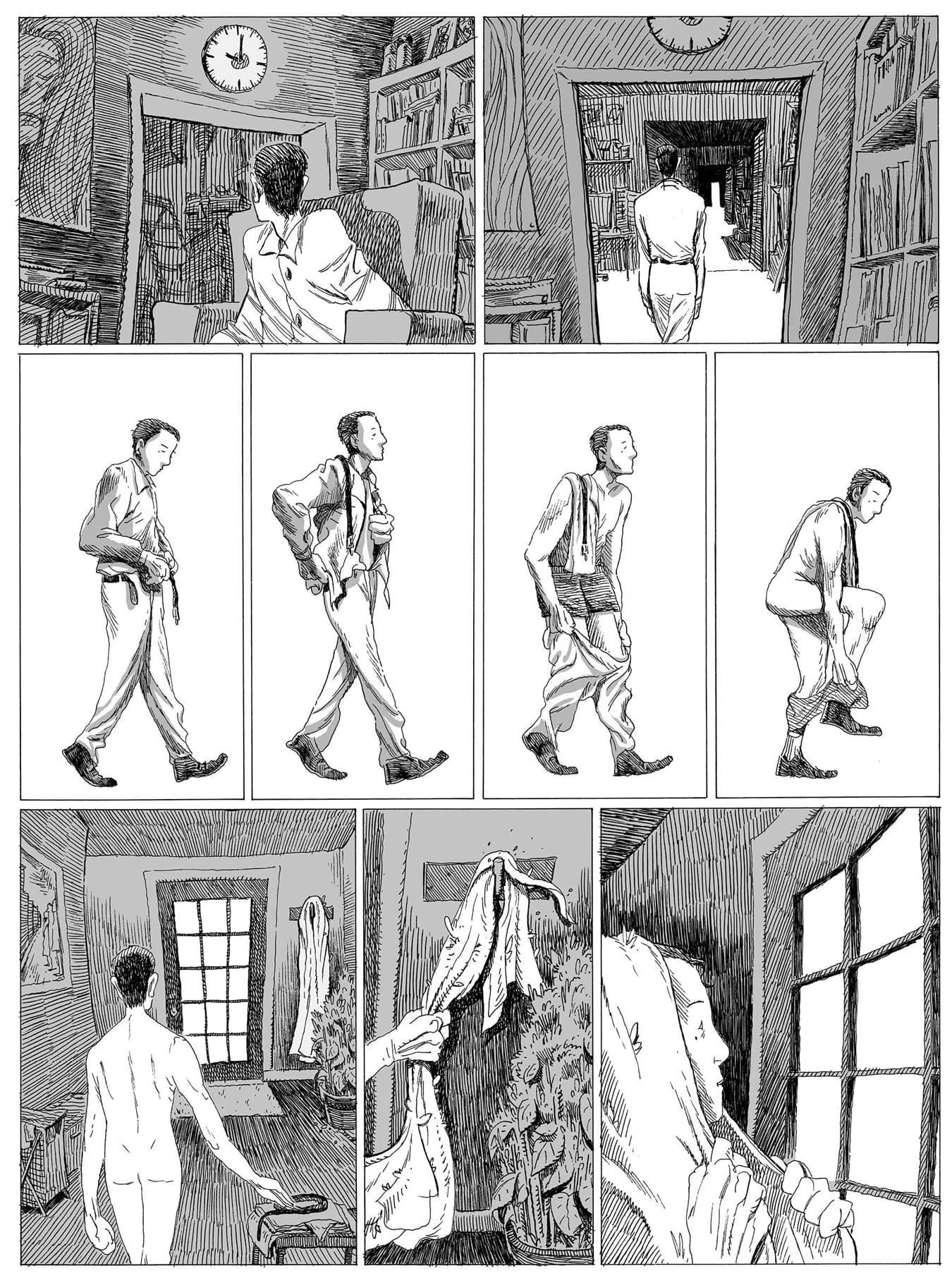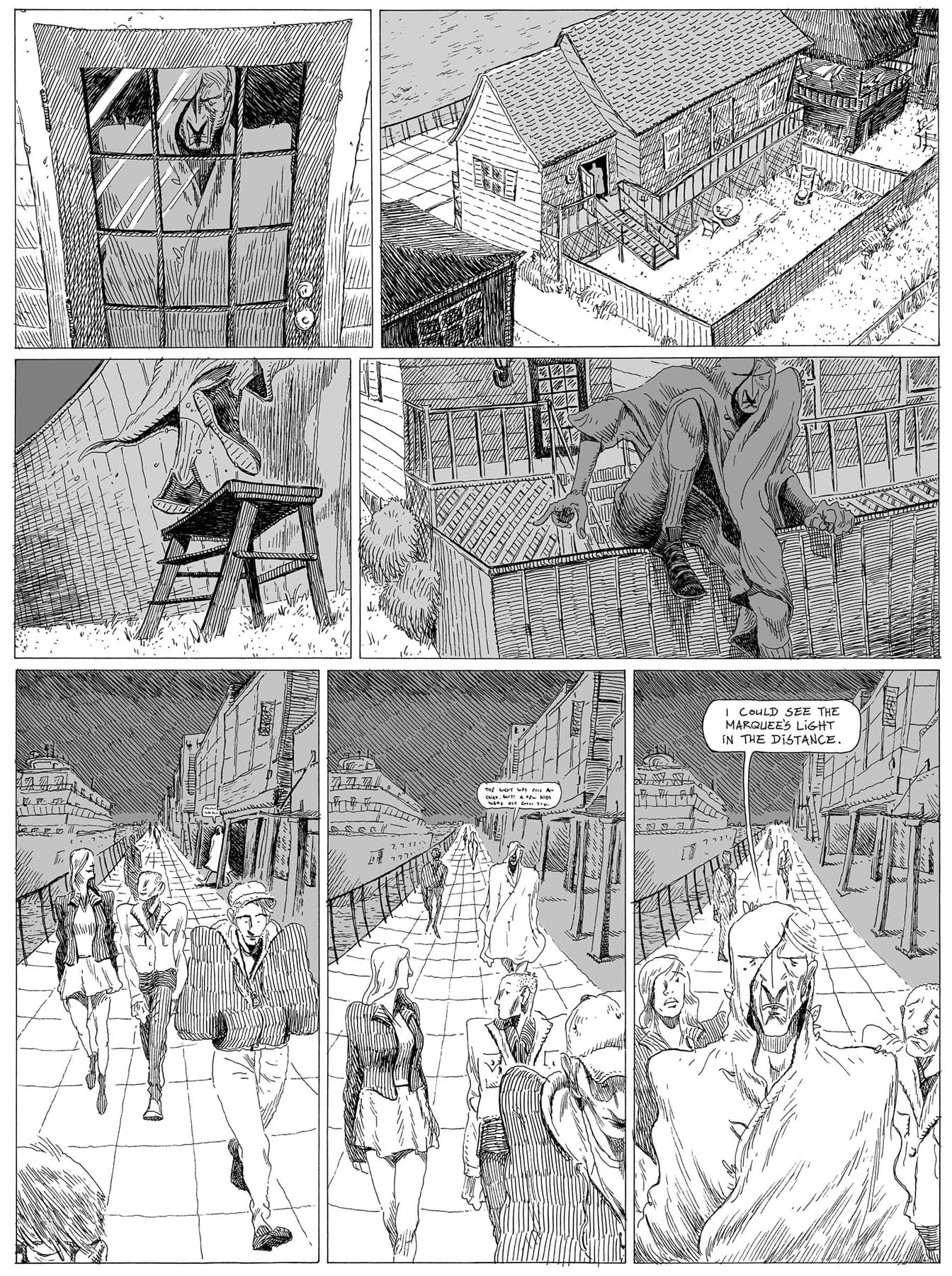 In the last six-panel page of Herman by Trade, the reader watches from an alley as people walk by. Businessmen. Families. Policeman. Students. By the last panel, everyone looks exactly the same.