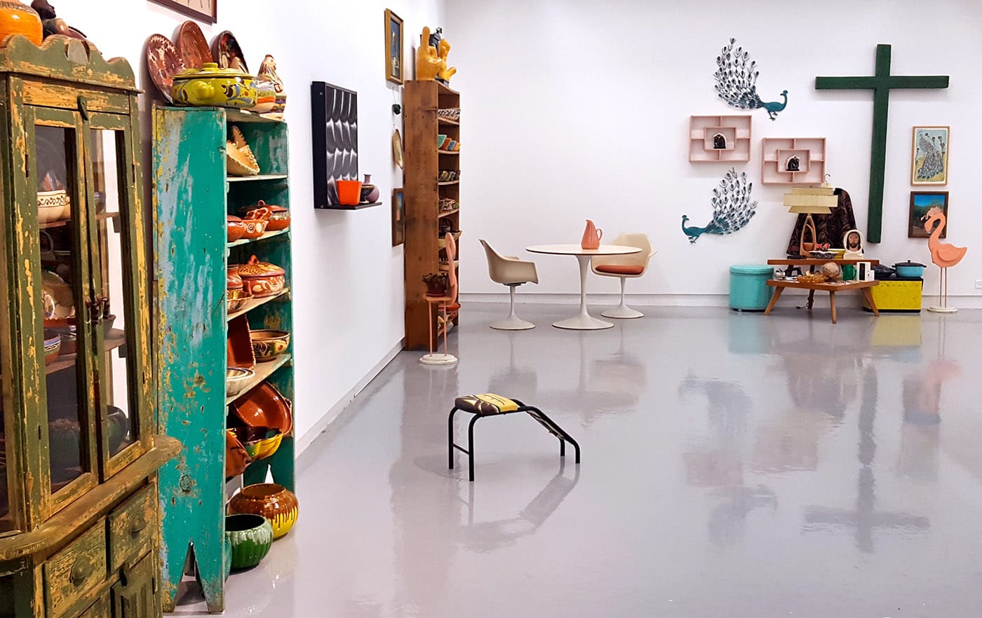 CHICAGO — The tendency of Pop artists to collect objects makes perfect sense: their practice is rooted in absorbing and remixing the available culture. At Kavi Gupta gallery, a retrospective pairs Roger Brown: Estate Paintings, a selection of paintings and sculptures by the seminal Imagist artist, with Collecting came quite natural for me, a series of recreated assemblages of objects in Brown’s personal collections from his home in La Conchita, California. Brown was a voracious collector of outsider art and cultural ephemera, and the eclectic tableaux on the second floor at Kavi Gupta contain a great deal of information that bears directly on his playful and cartoony paintings on the first.
