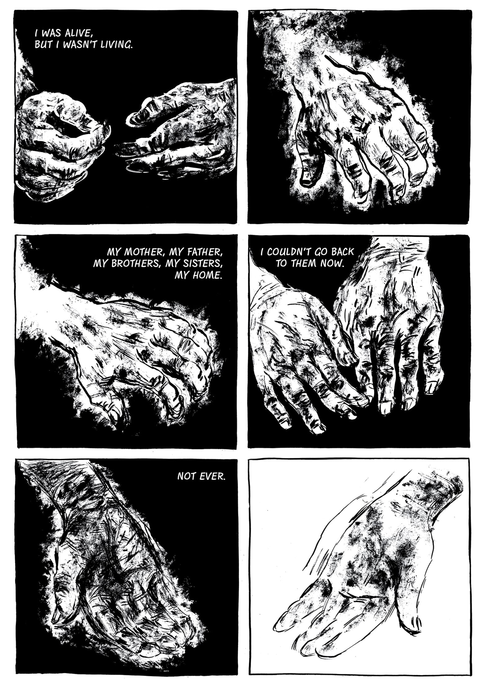 “Never in my wildest dreams did I think I’d be saying goodbye forever,” Ok-sun tells Gendry-Kim of having been sold to the udon shop owners. Grass pivots from interviews with the elderly Ok-sun at a nursing home; to autobiographical pages on how the book came to be; to the horrors of decades ago. The latter yields the most visually arresting sections, although the author breaks from all of it to contextualize the larger story in a documentarian manner that isn’t for the faint of heart.