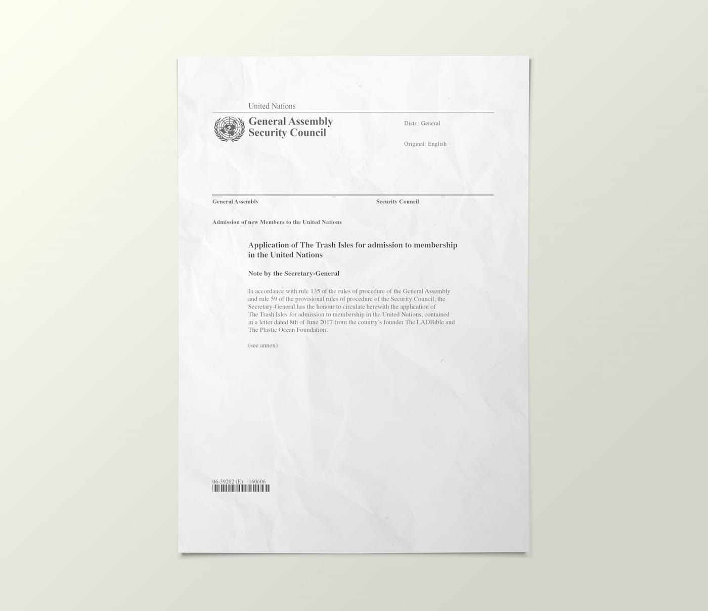 On World Oceans Day, the Plastic Oceans Foundation and British entertainment website LADbible submitted an application for nationhood to the United Nations, claiming that world leaders would have to cooperate to eradicate the floating pollution as per the UN’s environmental charters. As their proposal is still under consideration, the team is creating everything an official country needs, from a currency and passport to a flag and stamps. All designed products illustrate grim scenes of environmental degradation and proudly bear the name of the proposed nation: The Trash Isles.