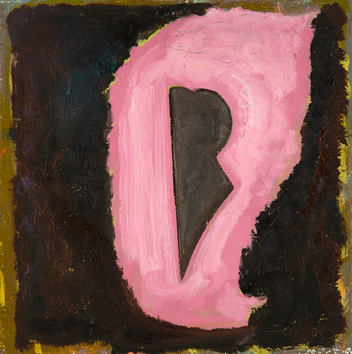 On view are 10 of this series of three-foot-square paintings, and seven more measuring 12 by 12 inches (all 2018). The more convincing of these are amplified by being simplified. A curious rectangle-and-rod motif appearing in other works is made explicitly piston-like in “Untitled I,” while “Untitled XI” isolates a shard-like glyph within a brushy pink surround against a field that approaches chromatic black. As usual, surfaces veer from waxy to glossy to satiny to everything in between.