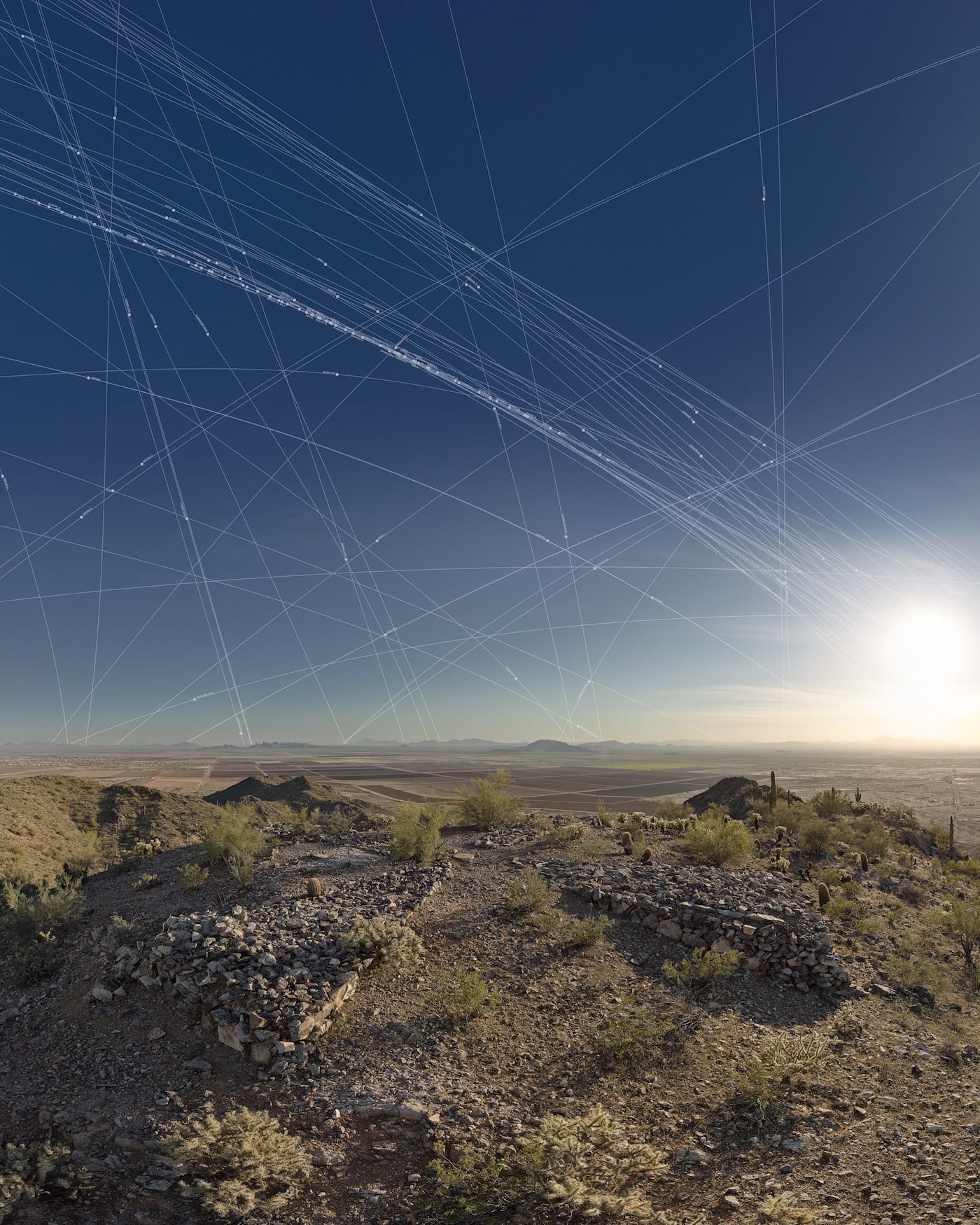 “By turning the sites into observatories of the contemporary proliferation of satellites, we feel we are bringing new meaning to the calibration markers,” the artists said. “We think of the images that we are creating as being simultaneously historic document, aesthetic artifact, and data map.”