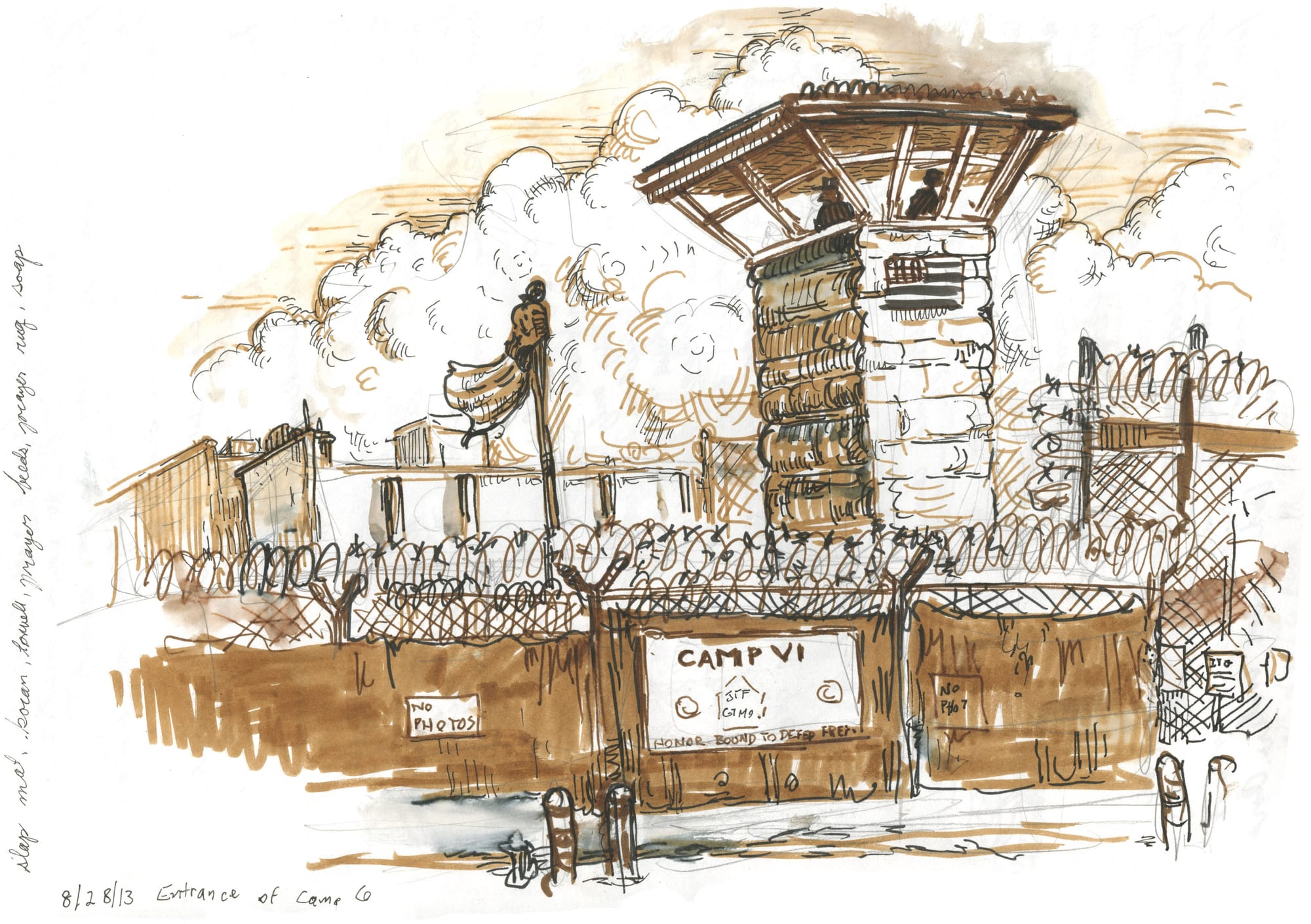 Writer and artist Molly Crabapple, on the other hand, found a workaround. She joined us to discuss her 2013 trip to the detention center, when she was granted access to draw this surreal prison and its inhabitants, both the incarcerated men and medics, guards, and other actors that keep the machine running. Her work shows us how the craft of drawing can illuminate truths that censored photographs cannot.