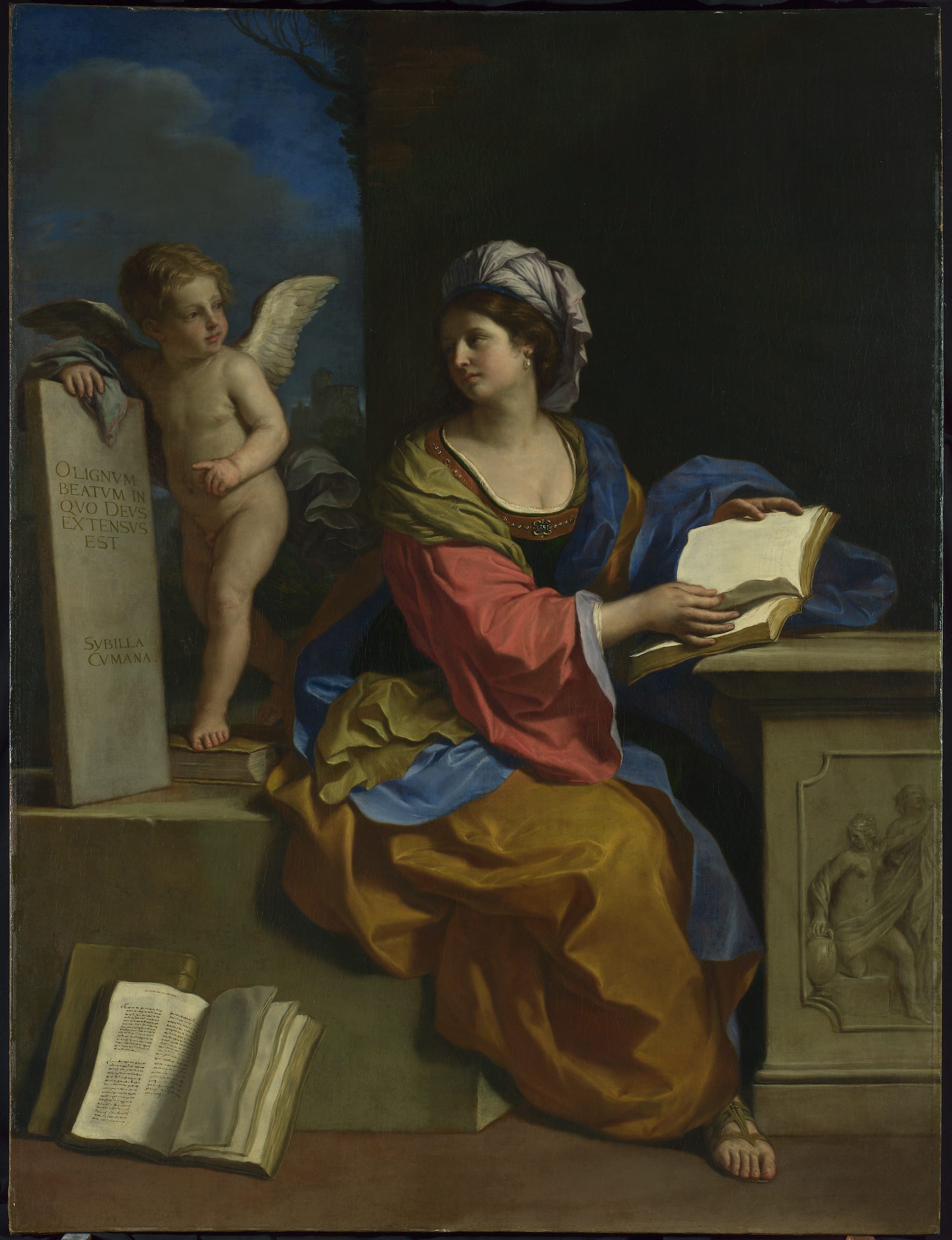 Indeed, the third sybil, she who hangs opposite David’s duo, travels a step further in the direction of modernity. Her reading is kept to her chest, facing toward her. Reading is a private matter. Nor do we have any idea from what she reads. It could be a novel. In her very privacy, she looks a much more sensuous being. Her head leans against the back of her hand. She is much more woman than prophetess. Is there more than a whiff of Romanticism, with its endless tales of self-absorption and subjectivity, on the wind?